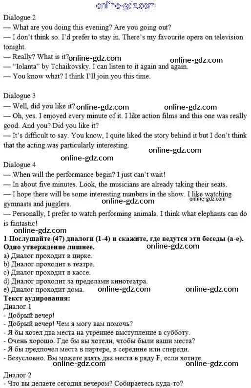Готовые домашние задания по Английскому языку за 8 класс Учебник Афанасьева, Михеева Rainbow 2016 - Step 4 Unit 3. Performing arts: cinema 1