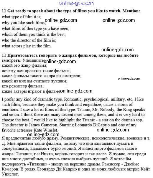 Готовые домашние задания по Английскому языку за 8 класс Учебник Афанасьева, Михеева Rainbow 2016 - Step 4 Unit 3. Performing arts: cinema 11