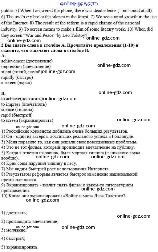 Готовые домашние задания по Английскому языку за 8 класс Учебник Афанасьева, Михеева Rainbow 2016 - Step 4 Unit 3. Performing arts: cinema 2