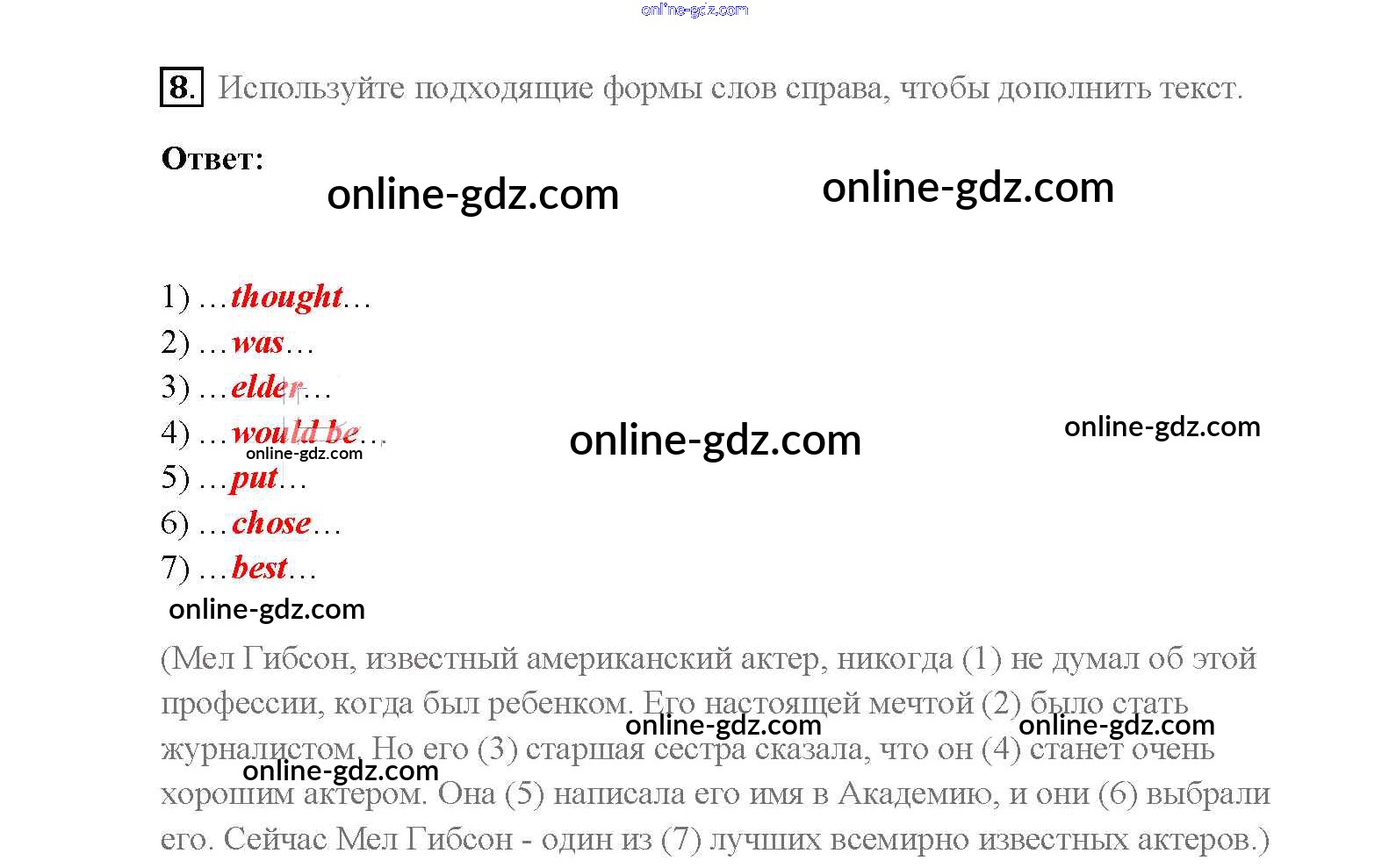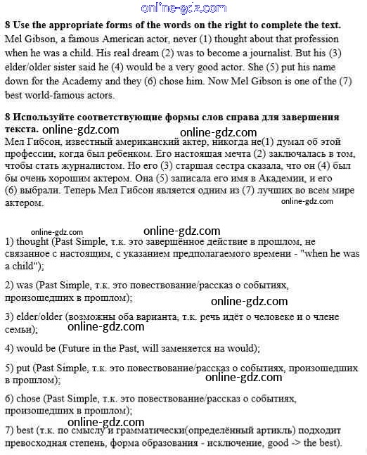 Готовые домашние задания по Английскому языку за 8 класс Учебник Афанасьева, Михеева Rainbow 2016 - Step 5 Unit 3. Performing arts: cinema 8