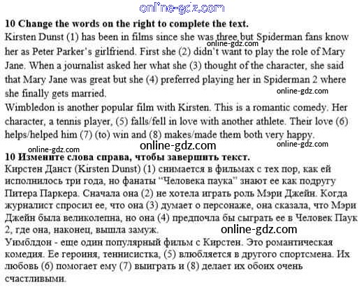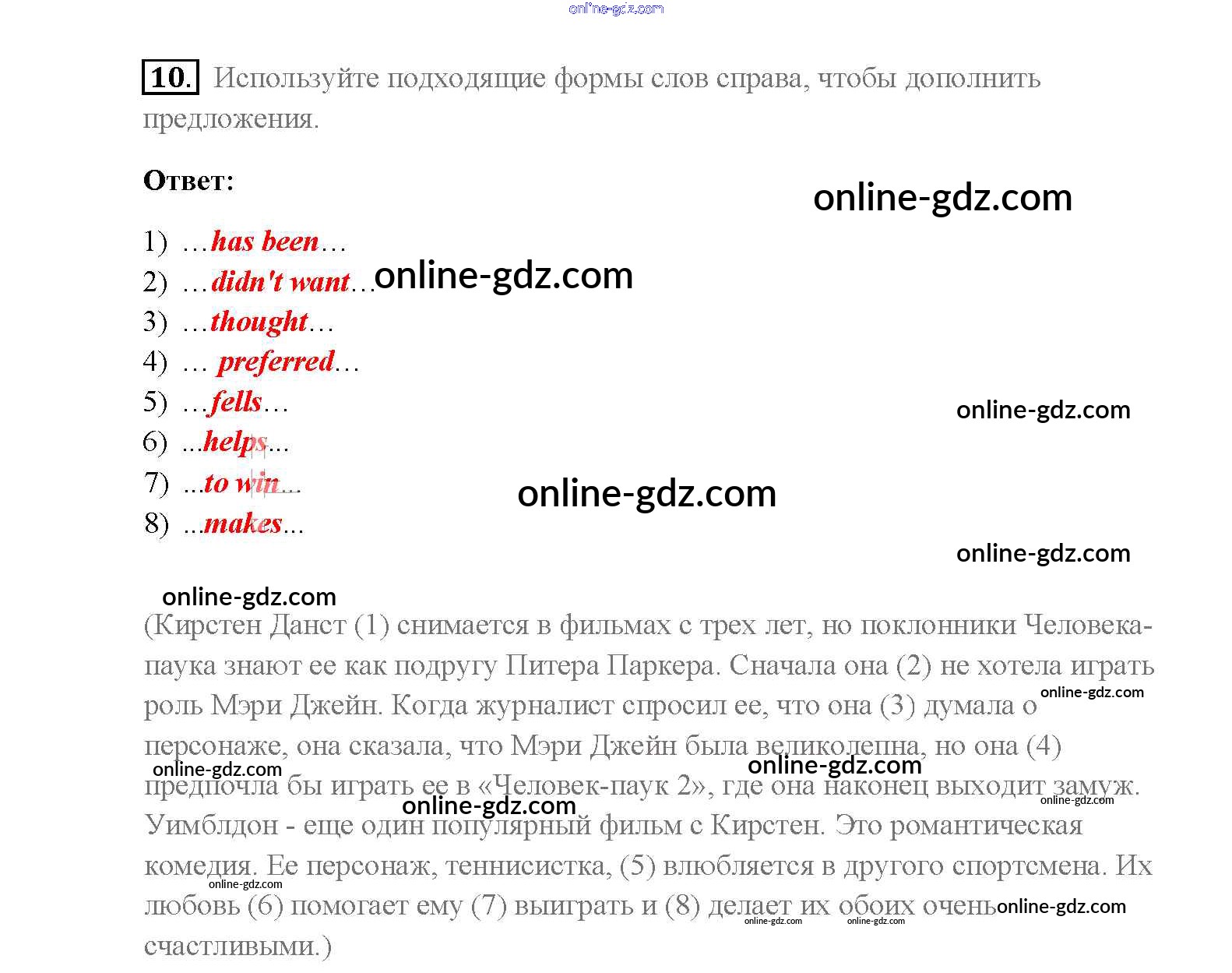Готовые домашние задания по Английскому языку за 8 класс Учебник Афанасьева, Михеева Rainbow 2016 - Step 6 Unit 3. Performing arts: cinema 10