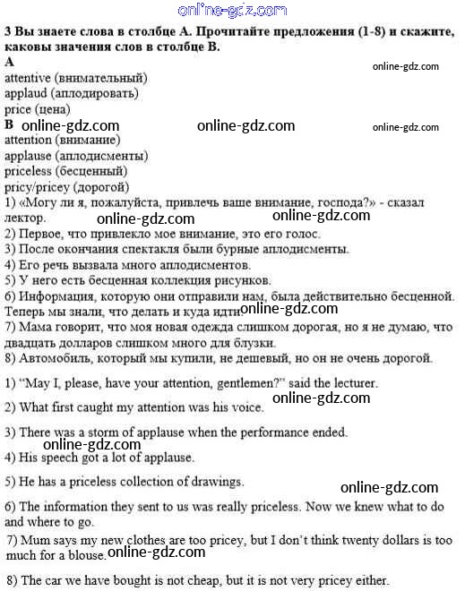 Готовые домашние задания по Английскому языку за 8 класс Учебник Афанасьева, Михеева Rainbow 2016 - Step 6 Unit 3. Performing arts: cinema 3