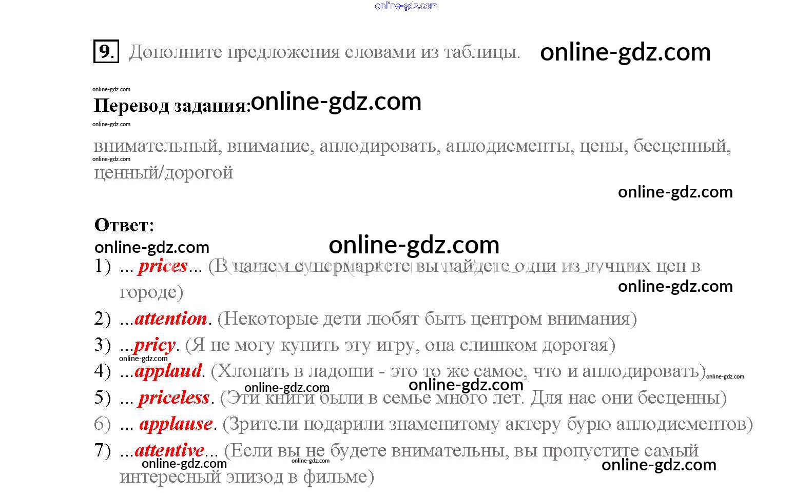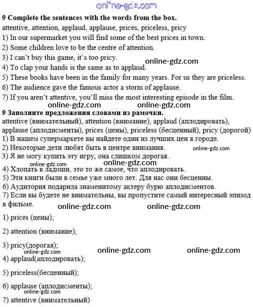 Готовые домашние задания по Английскому языку за 8 класс Учебник Афанасьева, Михеева Rainbow 2016 - Step 6 Unit 3. Performing arts: cinema 9