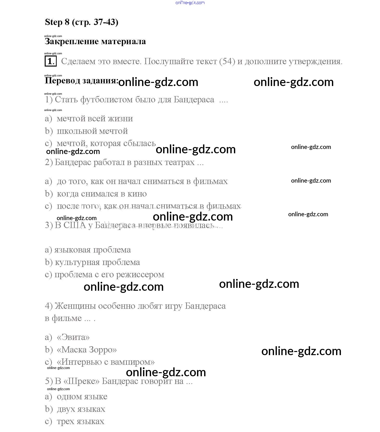 Готовые домашние задания по Английскому языку за 8 класс Учебник Афанасьева, Михеева Rainbow 2016 - Step 8 Unit 3. Performing arts: cinema 1