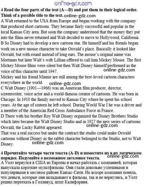 Готовые домашние задания по Английскому языку за 8 класс Учебник Афанасьева, Михеева Rainbow 2016 - Step 8 Unit 3. Performing arts: cinema 4