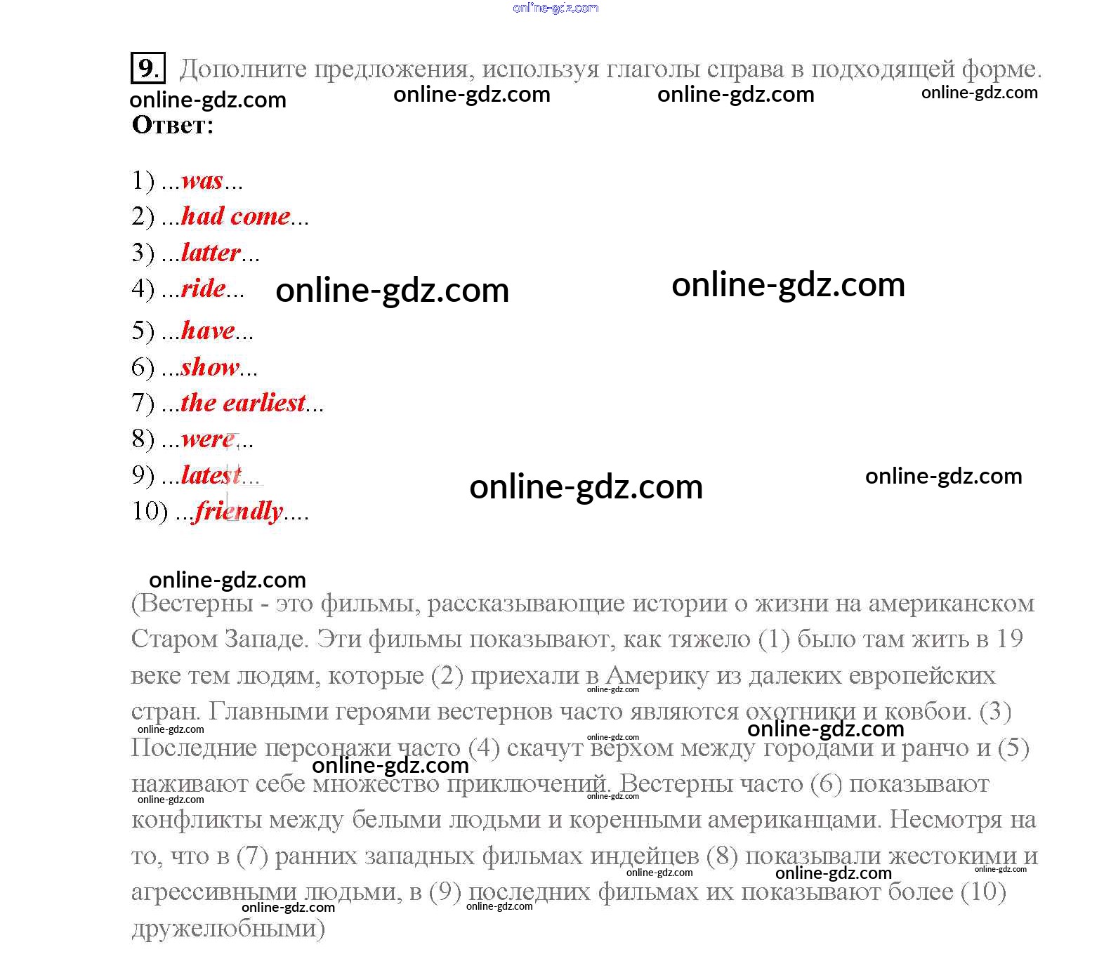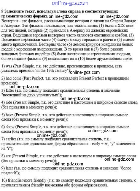 Готовые домашние задания по Английскому языку за 8 класс Учебник Афанасьева, Михеева Rainbow 2016 - Step 8 Unit 3. Performing arts: cinema 9
