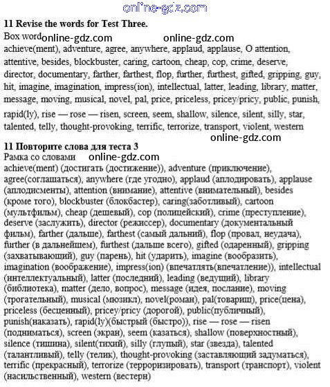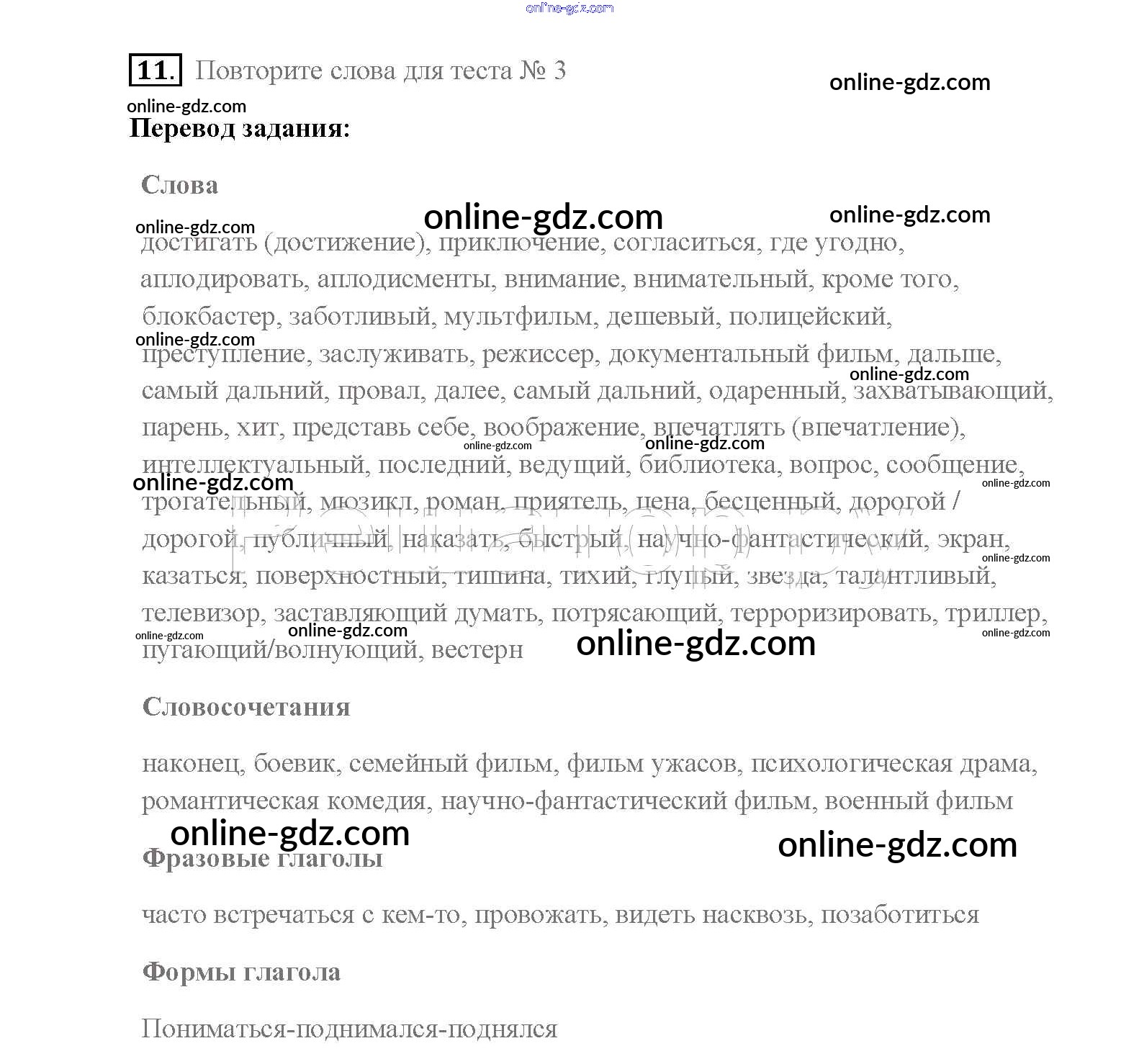 Готовые домашние задания по Английскому языку за 8 класс Учебник Афанасьева, Михеева Rainbow 2016 - Step 9 Unit 3. Performing arts: cinema 11