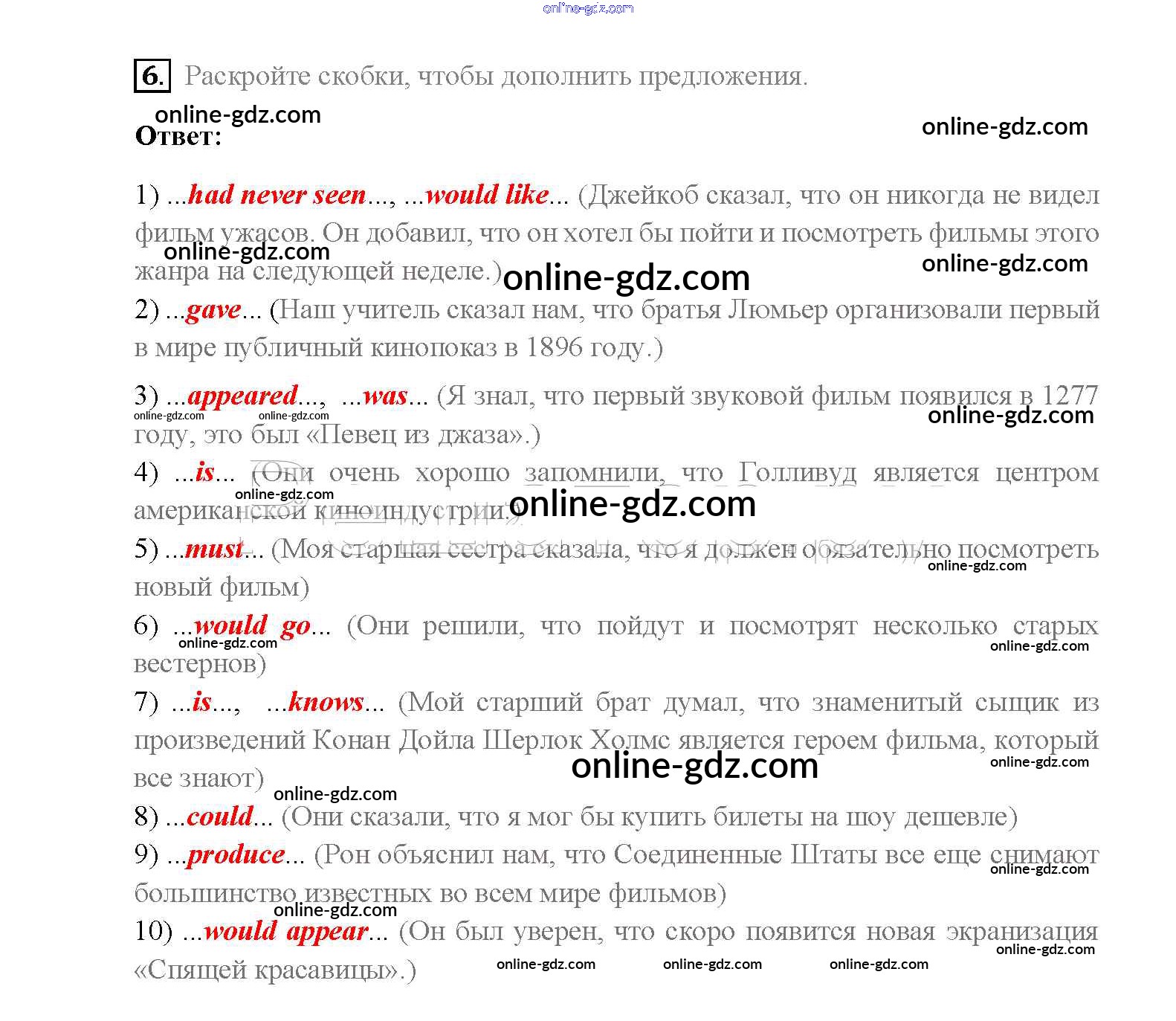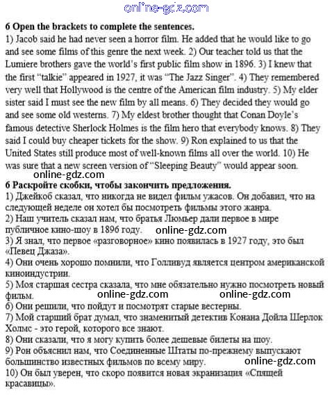 Готовые домашние задания по Английскому языку за 8 класс Учебник Афанасьева, Михеева Rainbow 2016 - Step 9 Unit 3. Performing arts: cinema 6