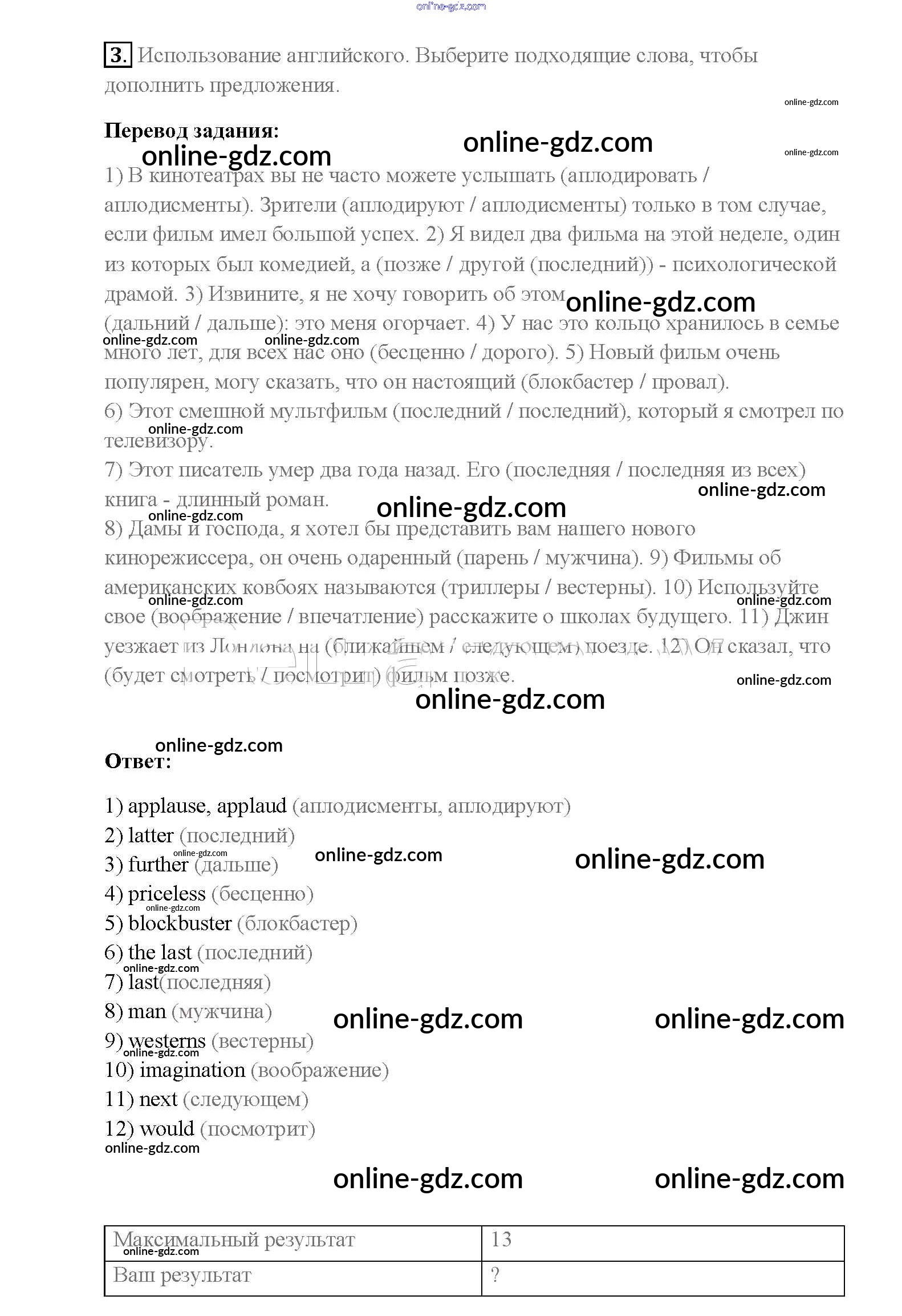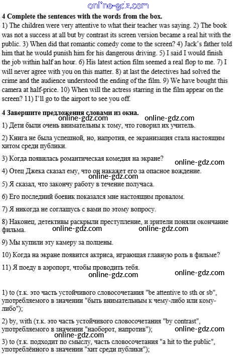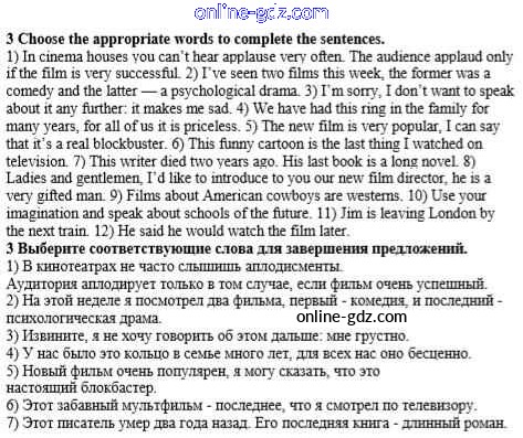 Готовые домашние задания по Английскому языку за 8 класс Учебник Афанасьева, Михеева Rainbow 2016 - Step 10 Unit 3. Performing arts: cinema 3
