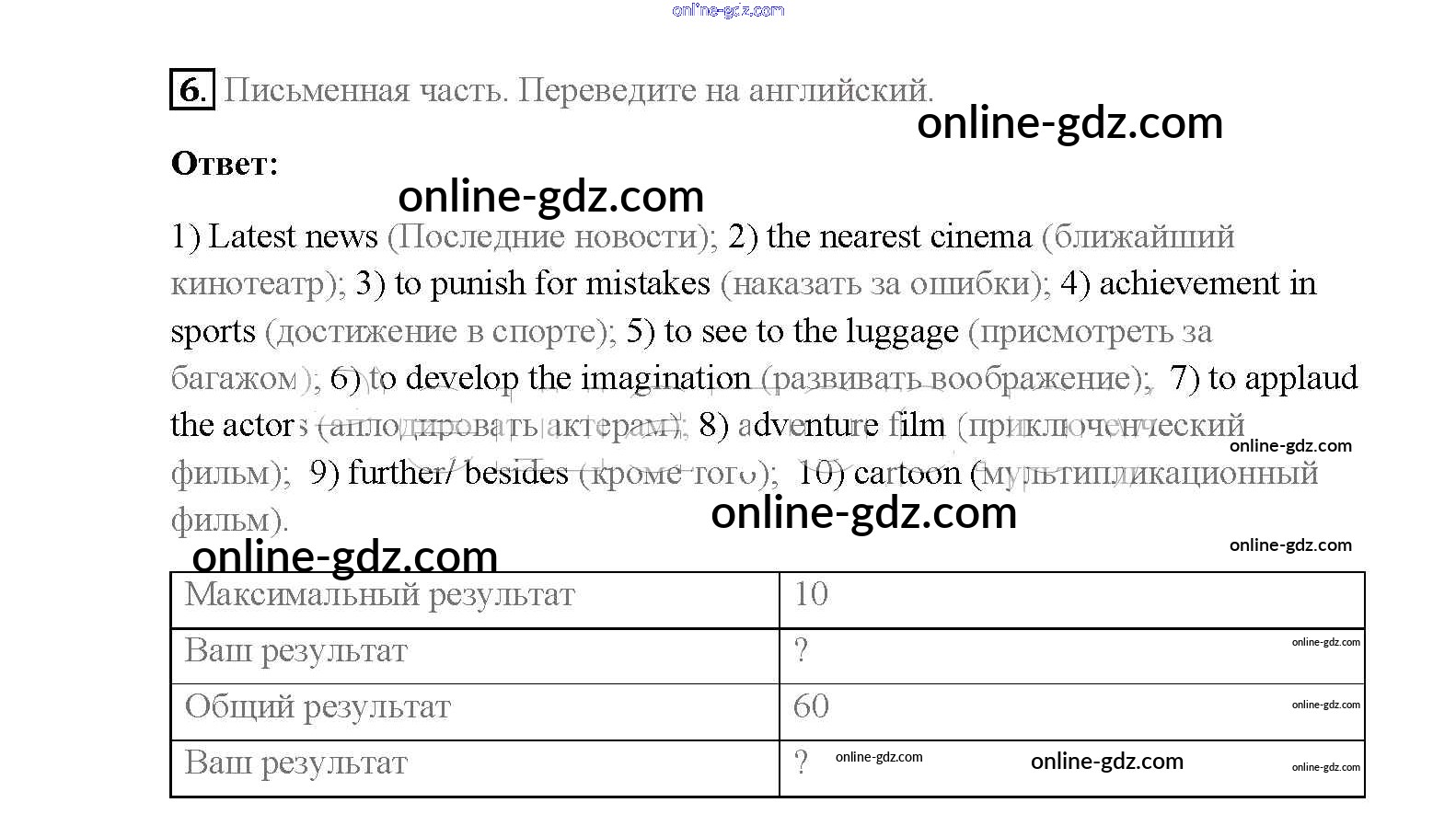 Готовые домашние задания по Английскому языку за 8 класс Учебник Афанасьева, Михеева Rainbow 2016 - Step 10 Unit 3. Performing arts: cinema 6