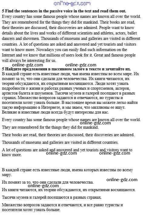 Готовые домашние задания по Английскому языку за 8 класс Учебник Афанасьева, Михеева Rainbow 2016 - Step 3 Unit 4. The whole world knows them 5