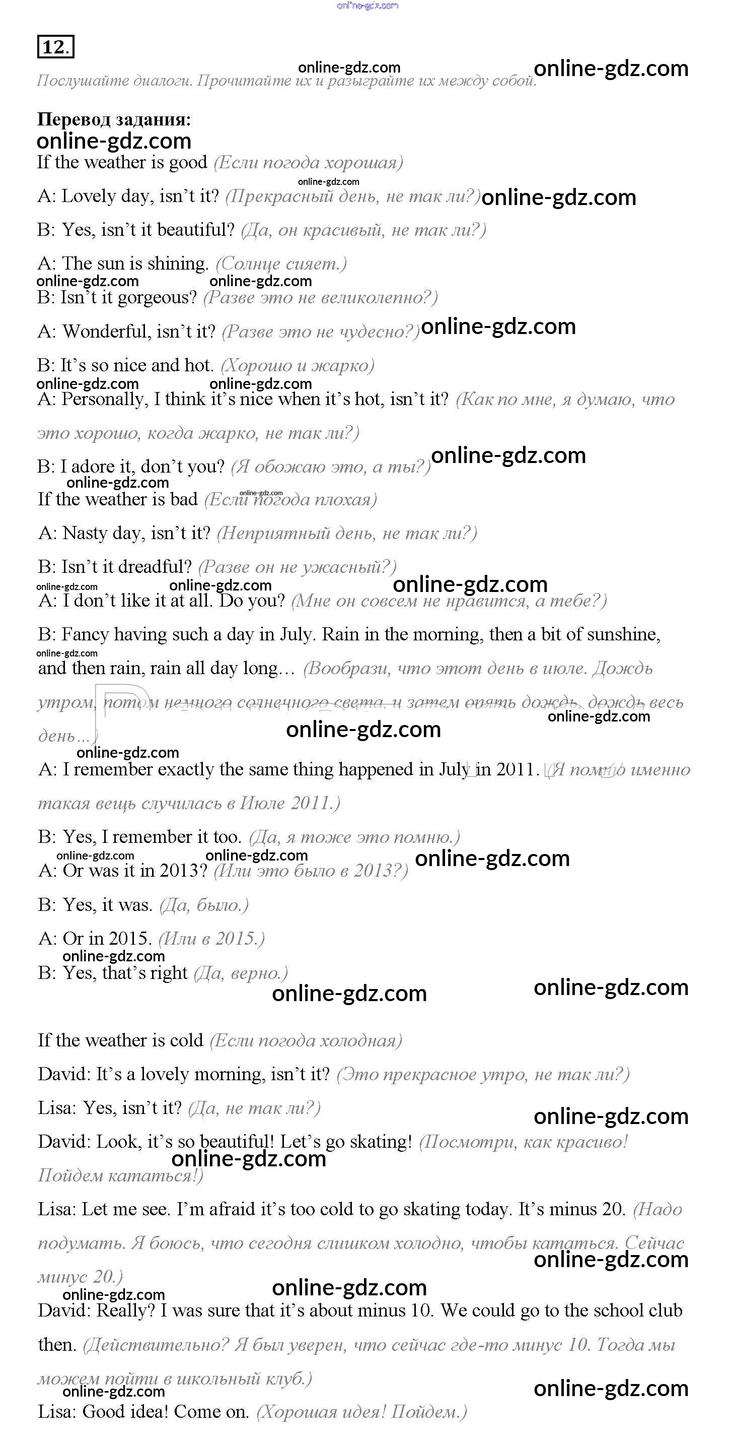 Готовые домашние задания по Английскому языку за 8 класс Учебник Биболетова, Трубанева Enjoy English 2015 - Section 1 Unit 1 12