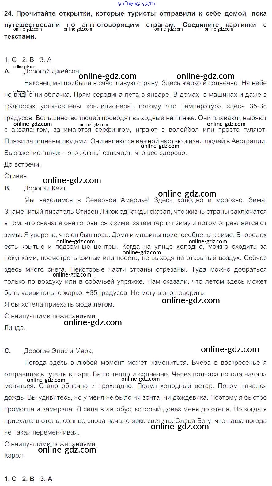Готовые домашние задания по Английскому языку за 8 класс Учебник Биболетова, Трубанева Enjoy English 2015 - Section 1 Unit 1 24