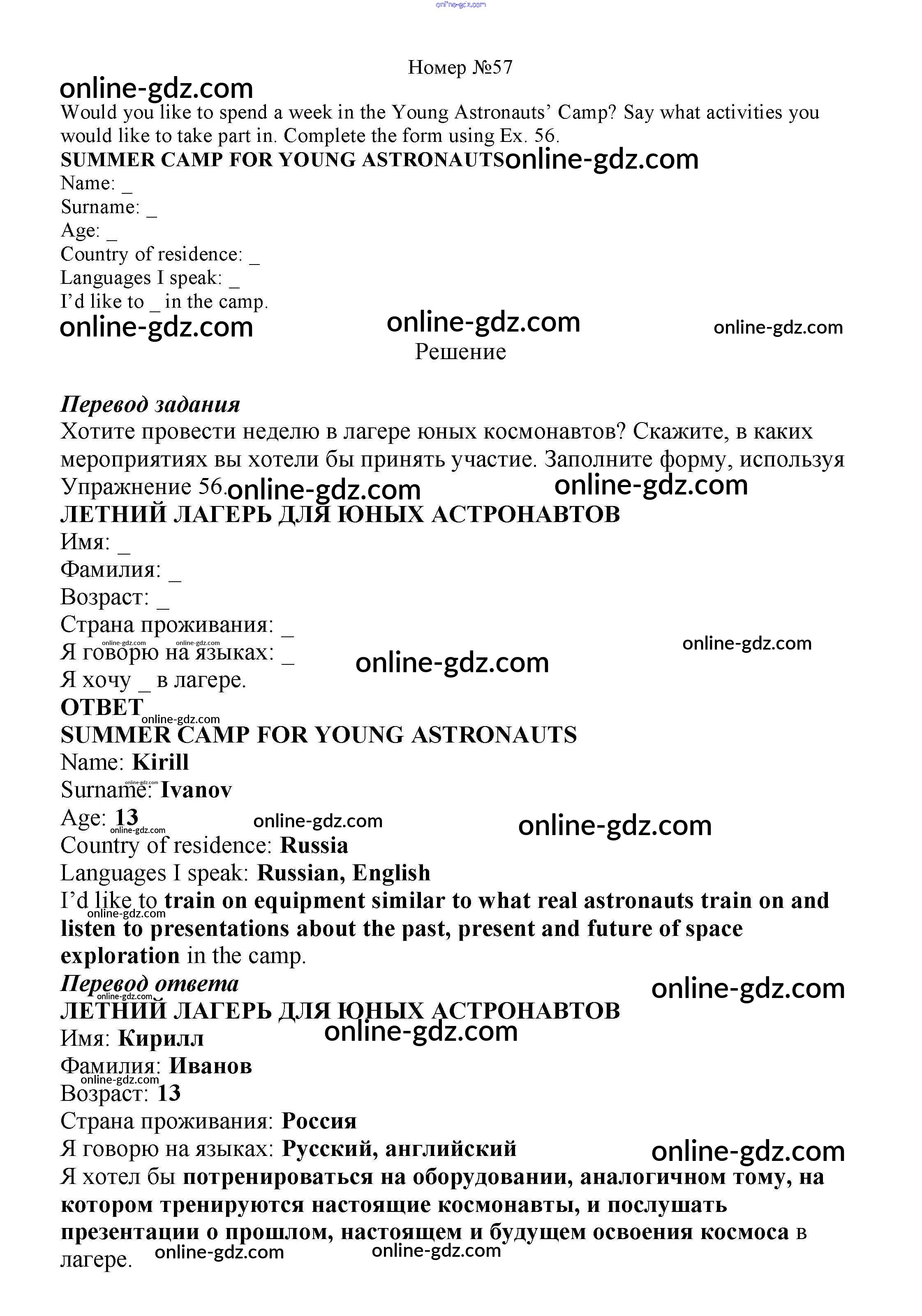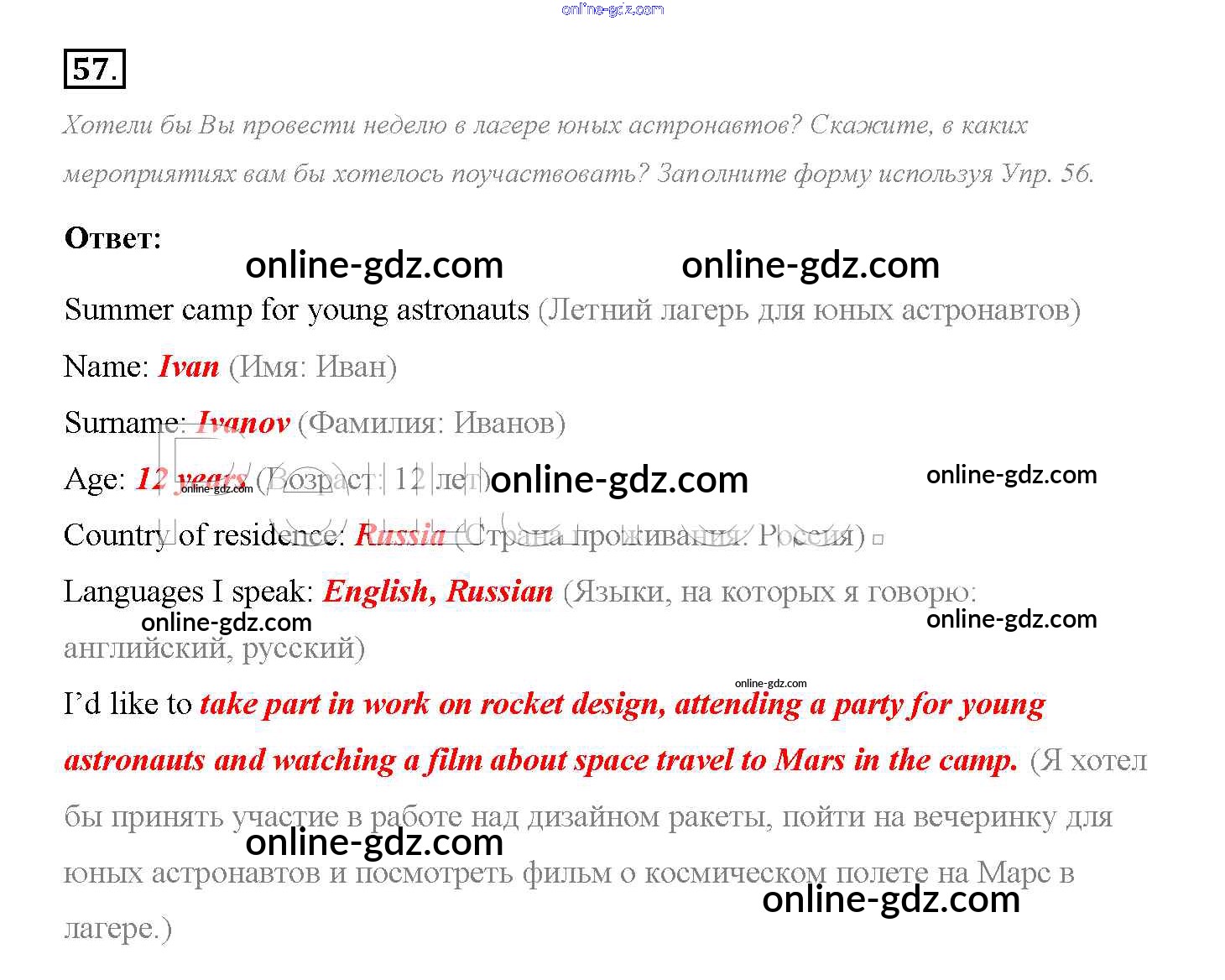 Готовые домашние задания по Английскому языку за 8 класс Учебник Биболетова, Трубанева Enjoy English 2015 - Section 3 Unit 1 57