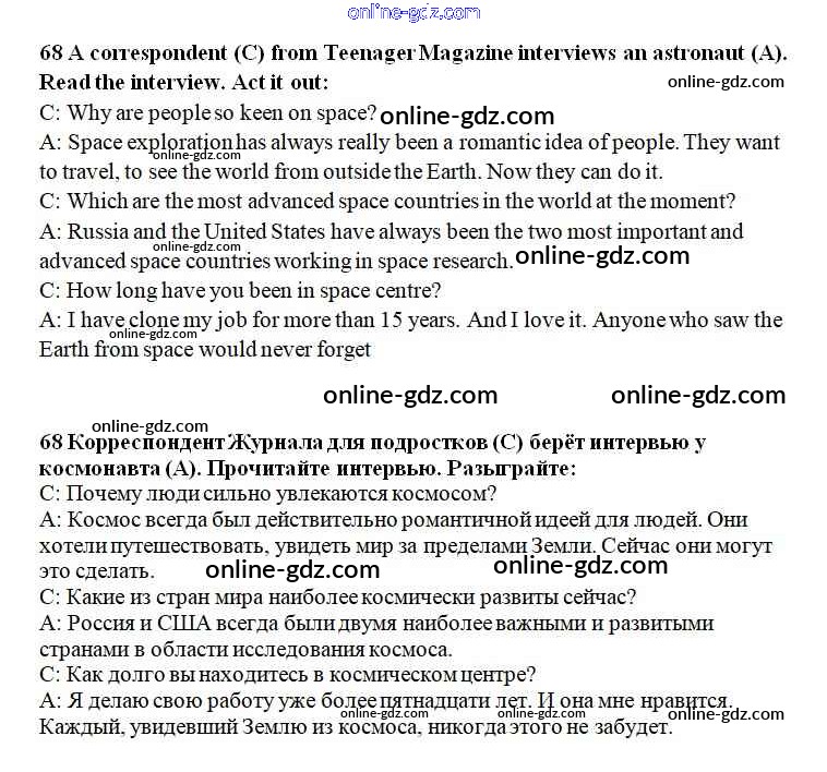 Готовые домашние задания по Английскому языку за 8 класс Учебник Биболетова, Трубанева Enjoy English 2015 - Section 4 Unit 1 68