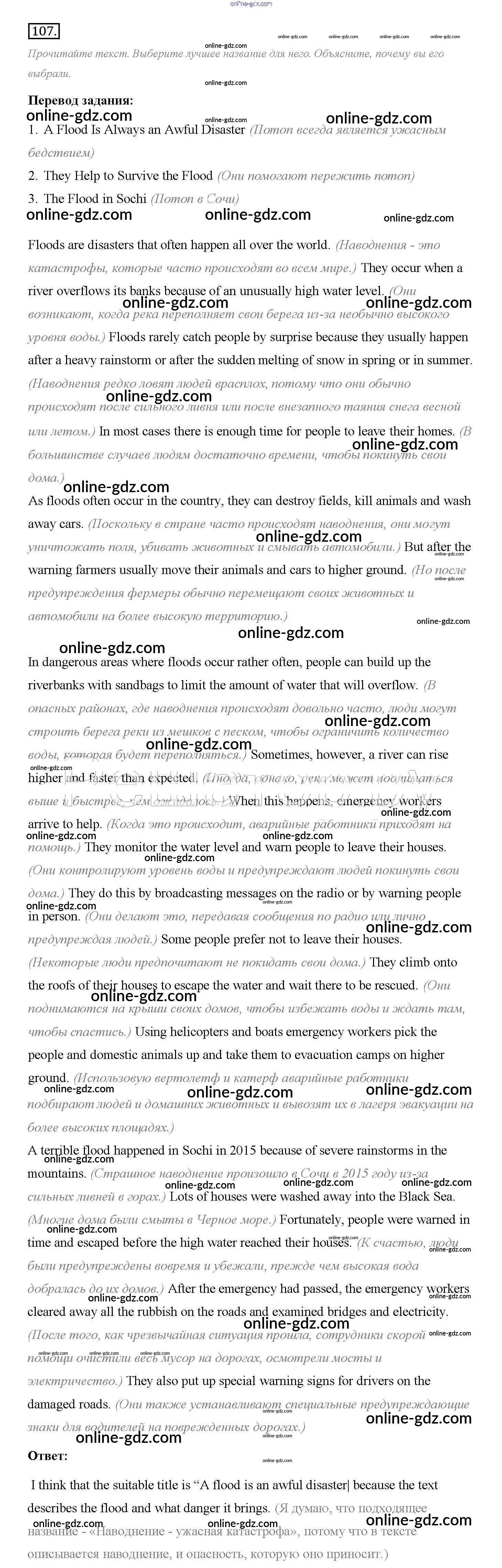 Готовые домашние задания по Английскому языку за 8 класс Учебник Биболетова, Трубанева Enjoy English 2015 - Section 6 Unit 1 107