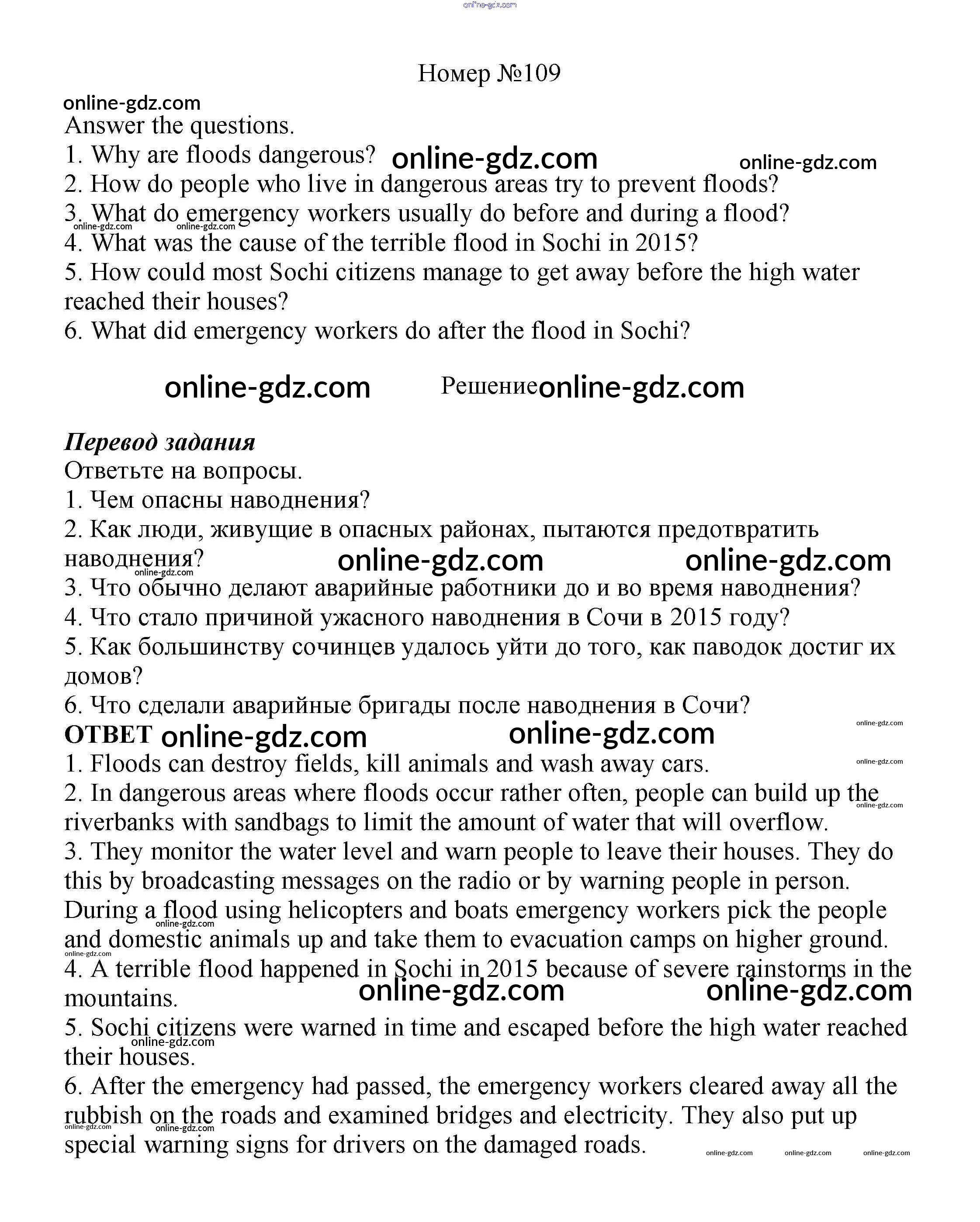 Готовые домашние задания по Английскому языку за 8 класс Учебник Биболетова, Трубанева Enjoy English 2015 - Section 6 Unit 1 109
