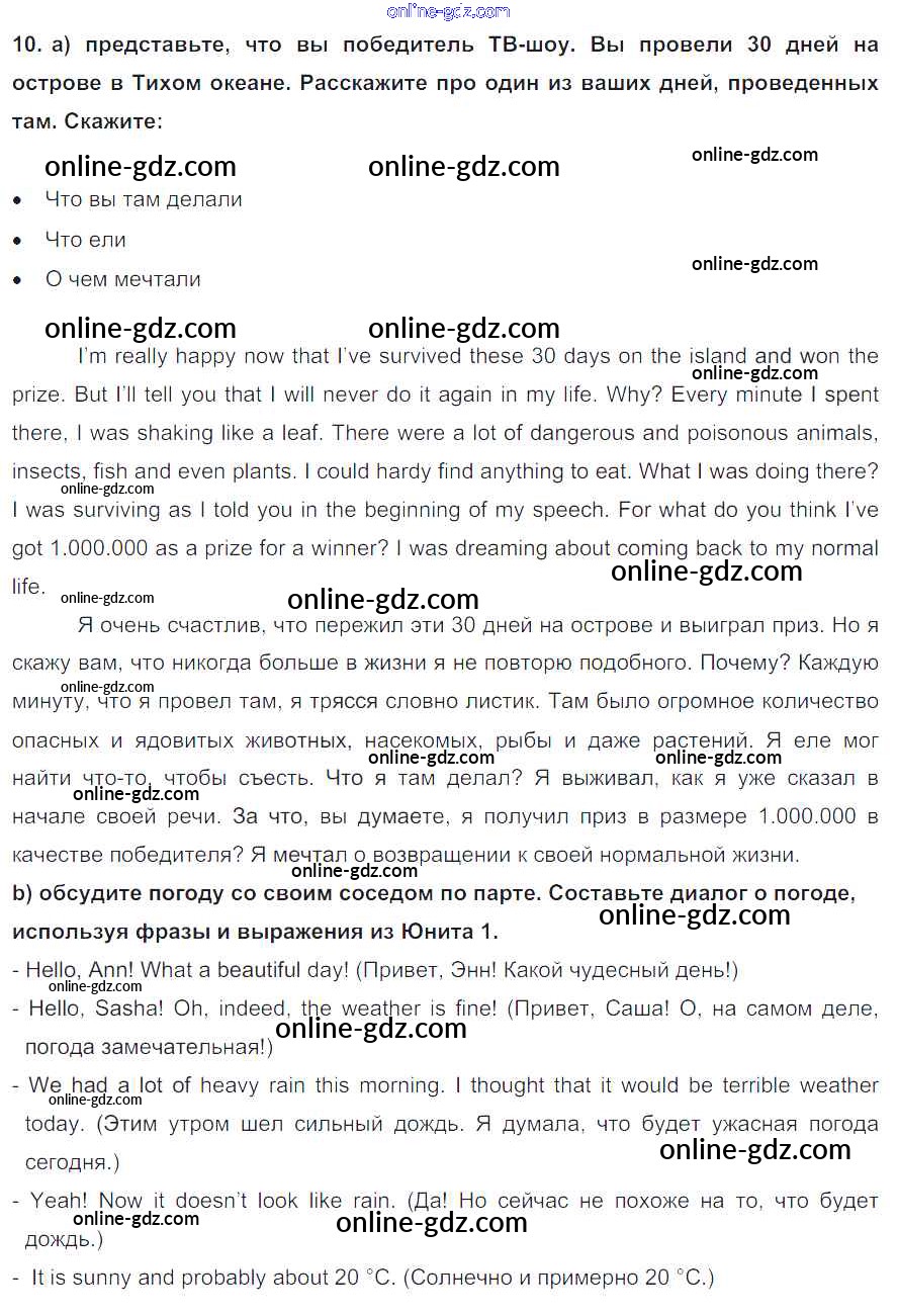 Готовые домашние задания по Английскому языку за 8 класс Учебник Биболетова, Трубанева Enjoy English 2015 - Progress check Unit 1 10