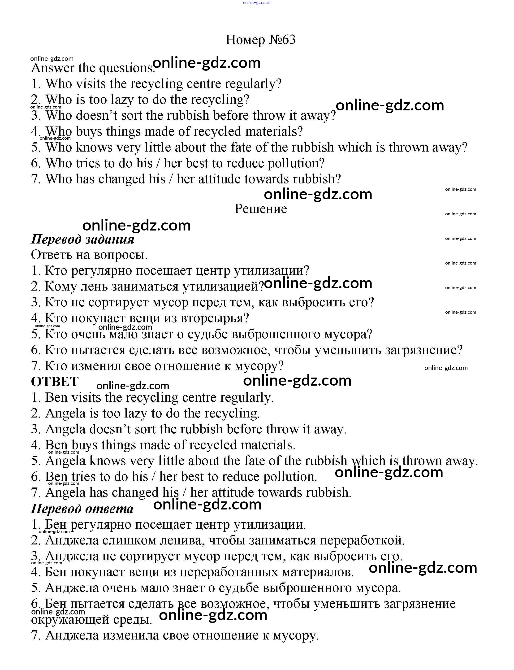Готовые домашние задания по Английскому языку за 8 класс Учебник Биболетова, Трубанева Enjoy English 2015 - Section 5 Unit 2 63