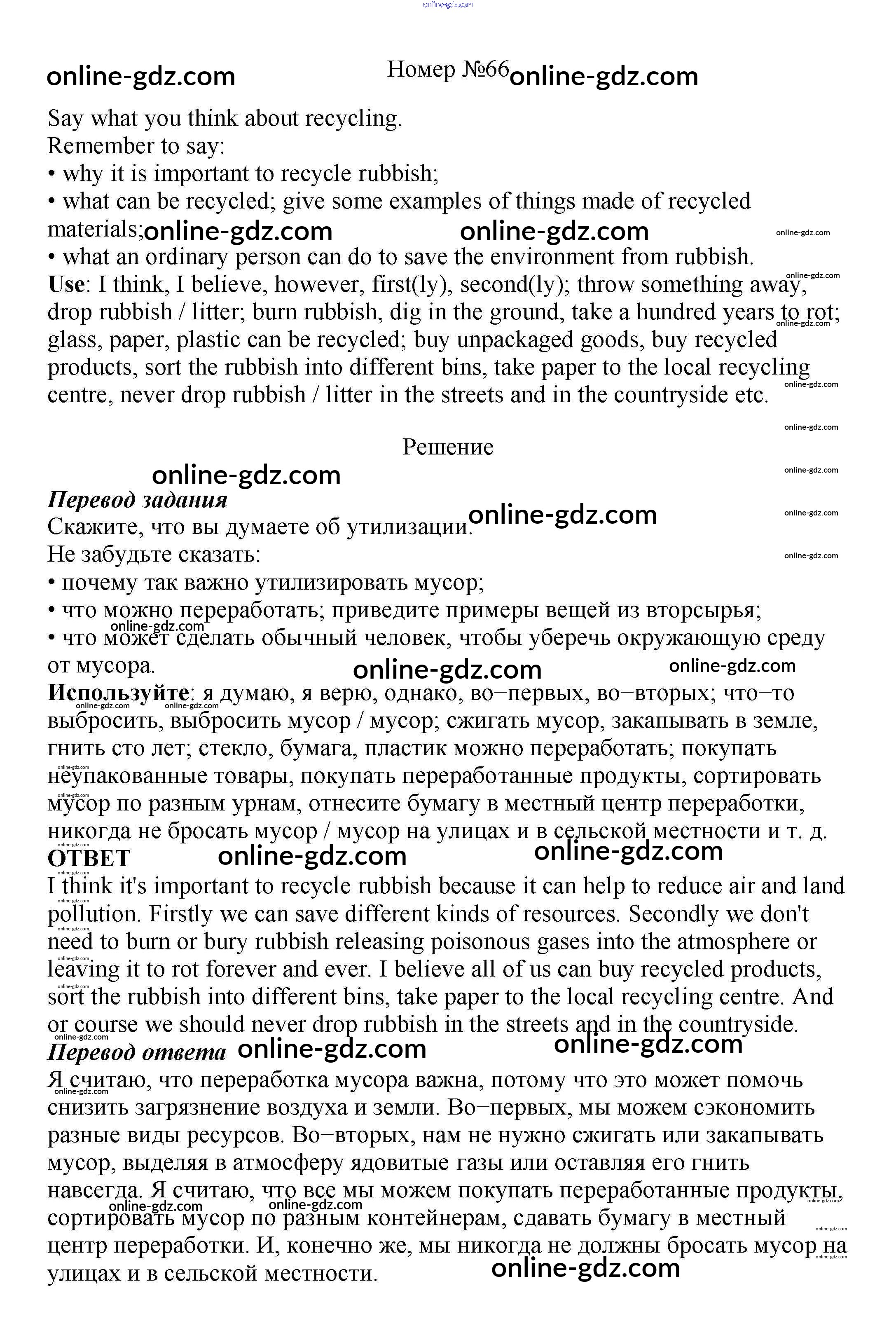 Готовые домашние задания по Английскому языку за 8 класс Учебник Биболетова, Трубанева Enjoy English 2015 - Section 5 Unit 2 66