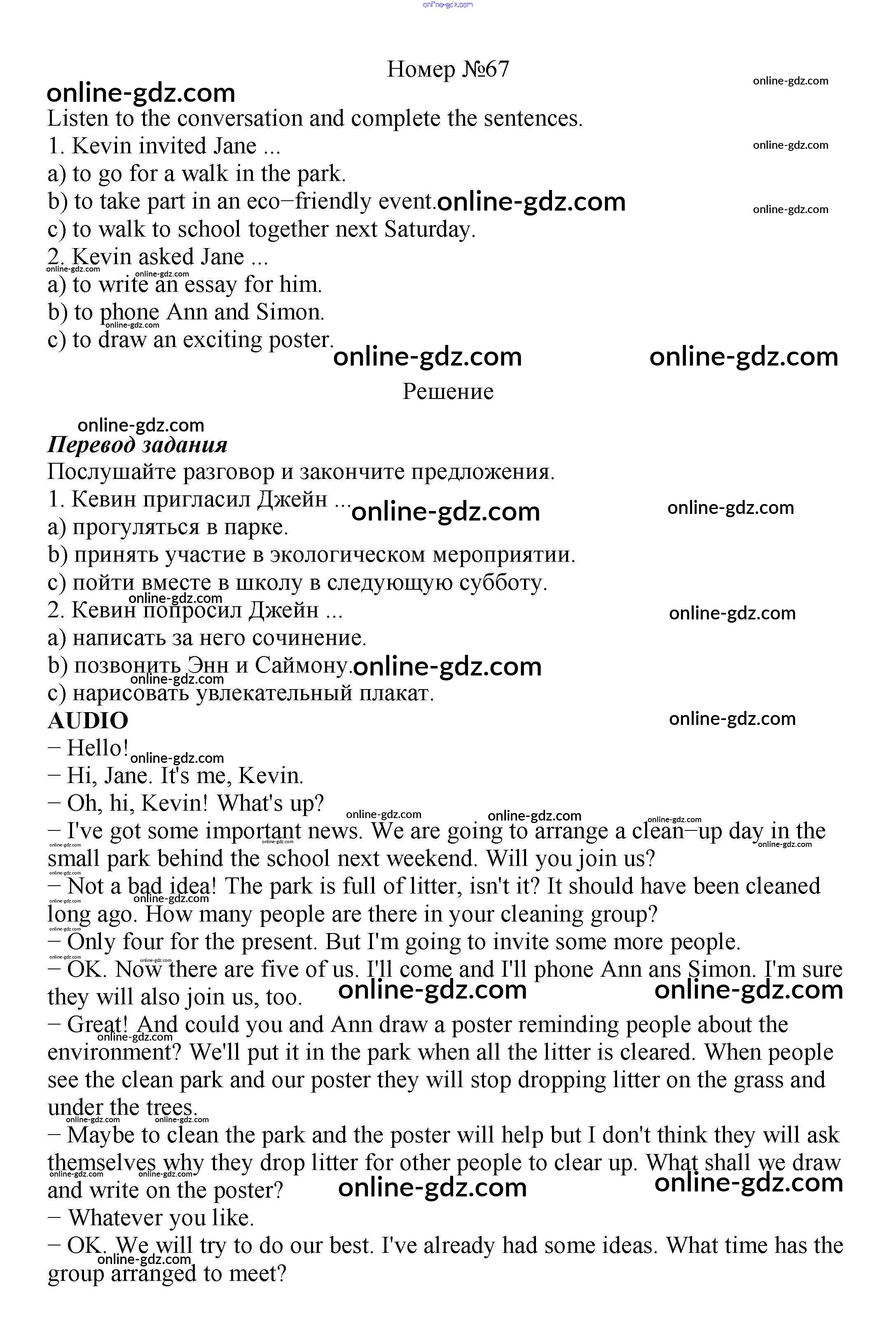 Готовые домашние задания по Английскому языку за 8 класс Учебник Биболетова, Трубанева Enjoy English 2015 - Section 5 Unit 2 67