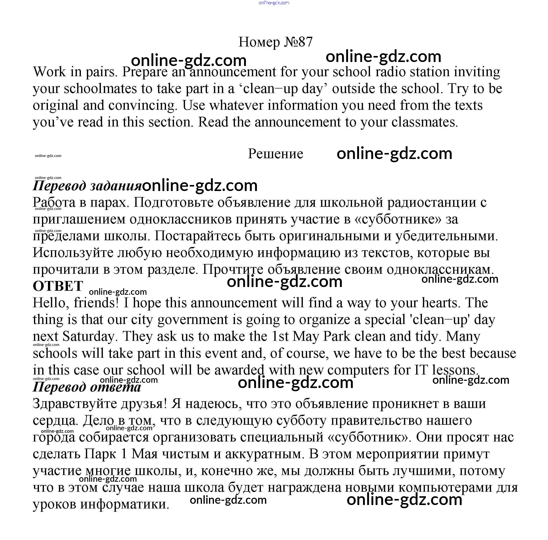 Готовые домашние задания по Английскому языку за 8 класс Учебник Биболетова, Трубанева Enjoy English 2015 - Section 5 Unit 2 86