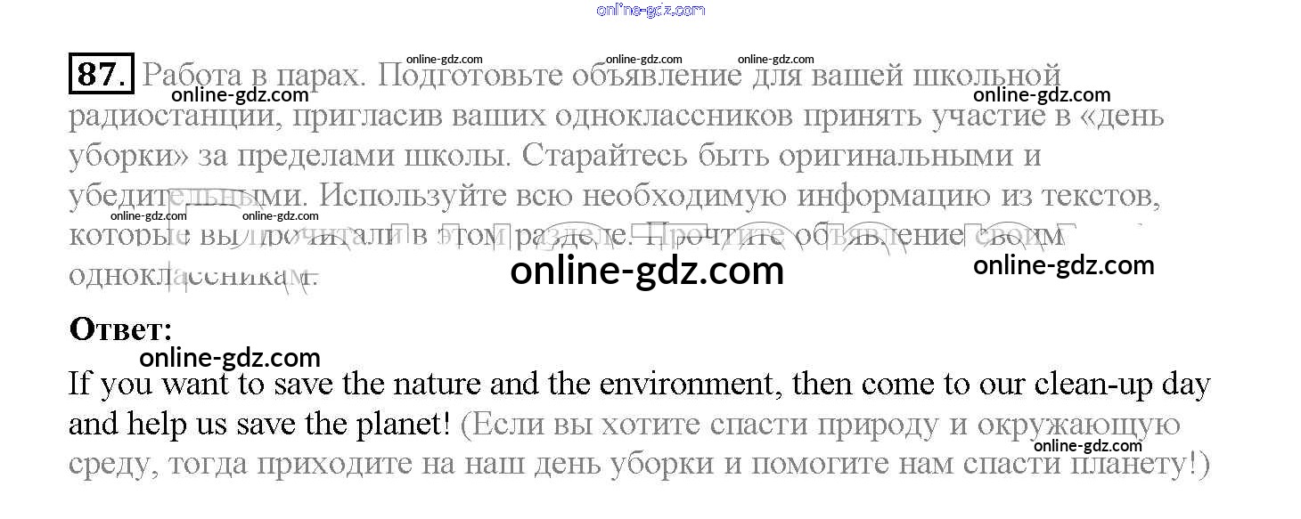 Готовые домашние задания по Английскому языку за 8 класс Учебник Биболетова, Трубанева Enjoy English 2015 - Section 5 Unit 2 87