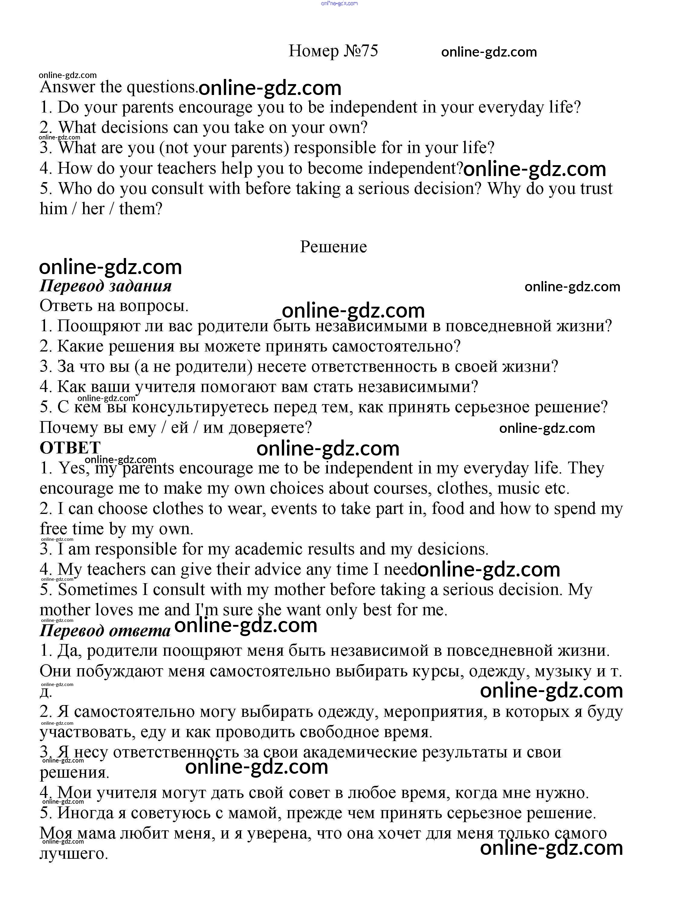 Готовые домашние задания по Английскому языку за 8 класс Учебник Биболетова, Трубанева Enjoy English 2015 - Section 5 Unit 4 75