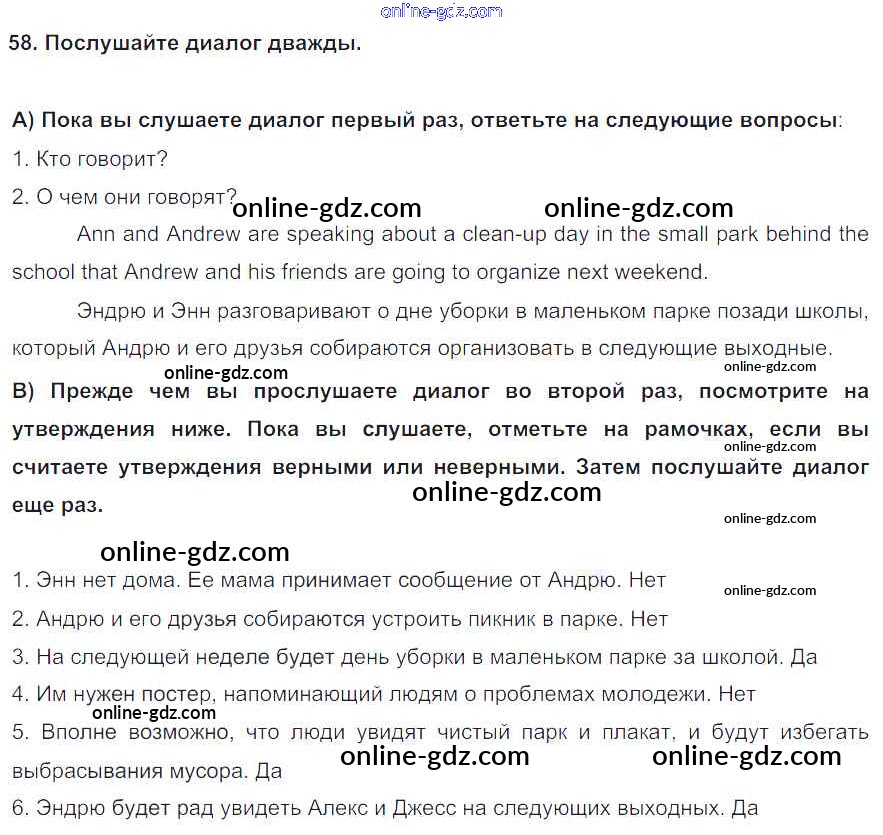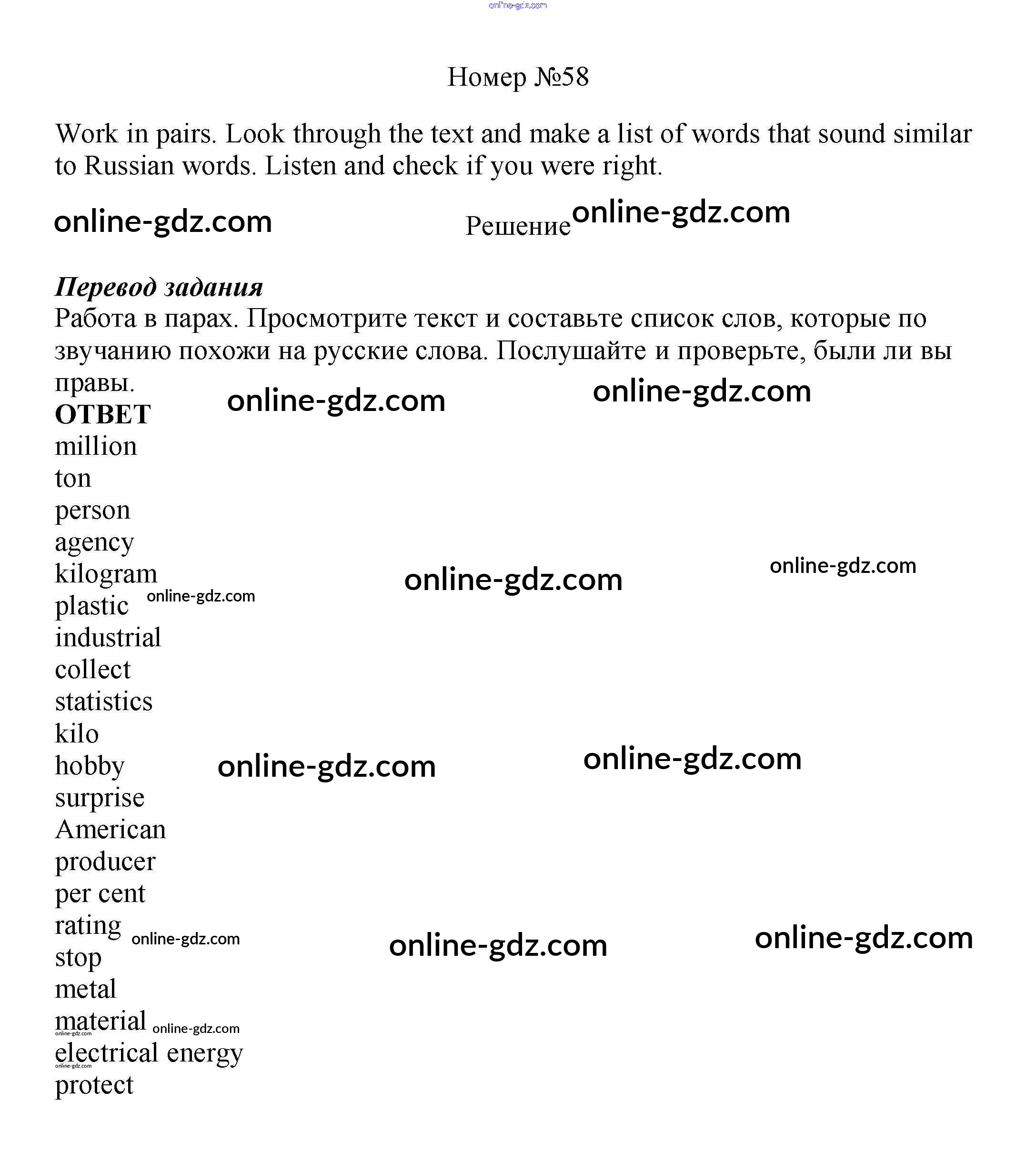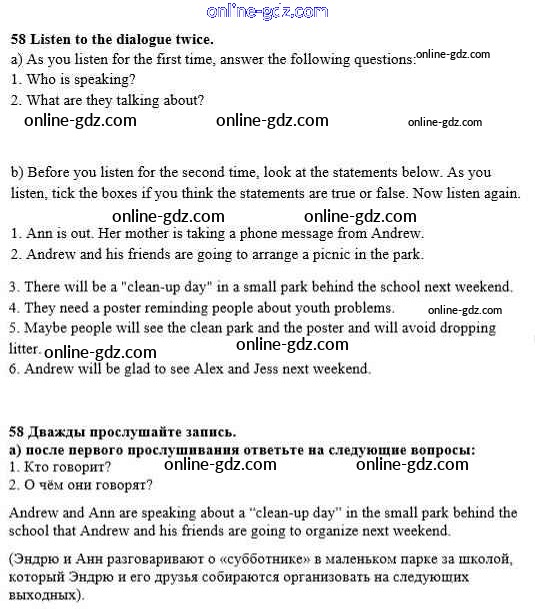 Готовые домашние задания по Английскому языку за 8 класс Учебник Биболетова, Трубанева Enjoy English 2015 - Section 5 Unit 2 58