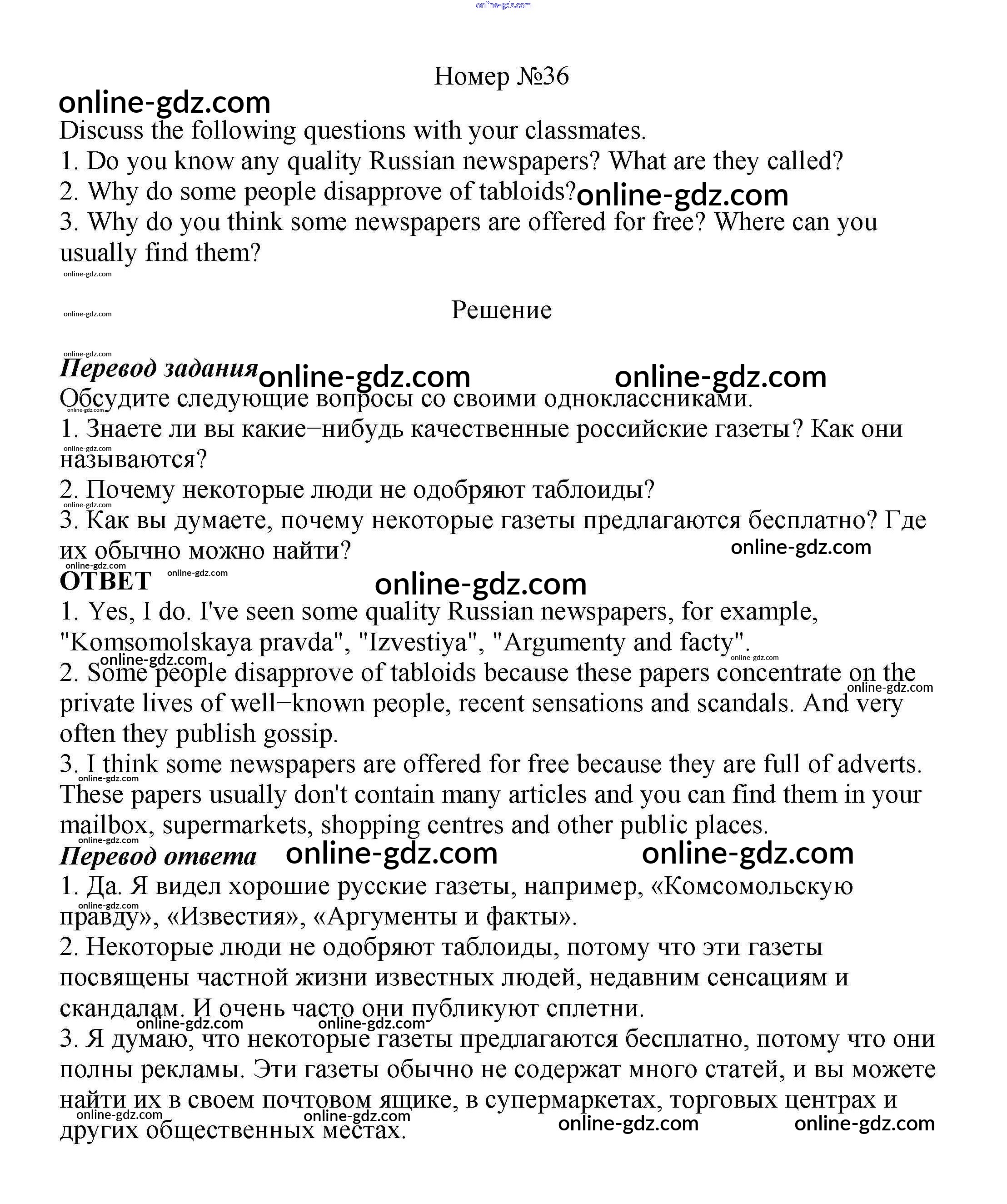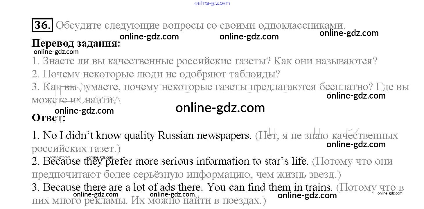 Готовые домашние задания по Английскому языку за 8 класс Учебник Биболетова, Трубанева Enjoy English 2015 - Section 3 Unit 3 36
