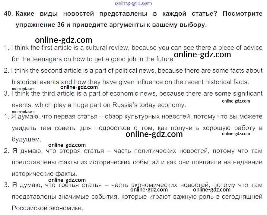Готовые домашние задания по Английскому языку за 8 класс Учебник Биболетова, Трубанева Enjoy English 2015 - Section 3 Unit 3 40