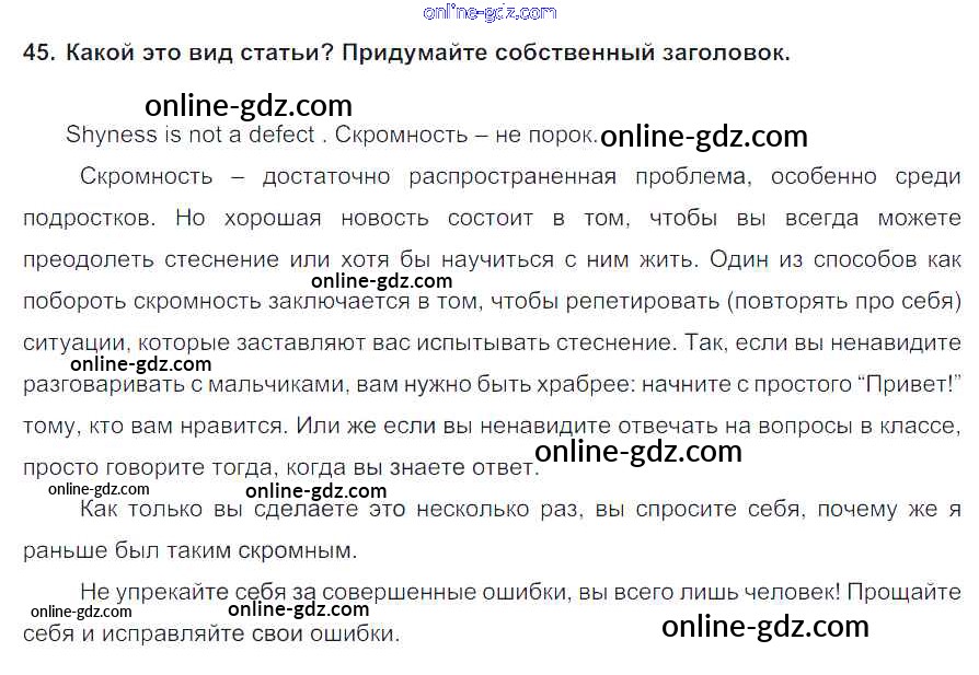 Готовые домашние задания по Английскому языку за 8 класс Учебник Биболетова, Трубанева Enjoy English 2015 - Section 3 Unit 3 45