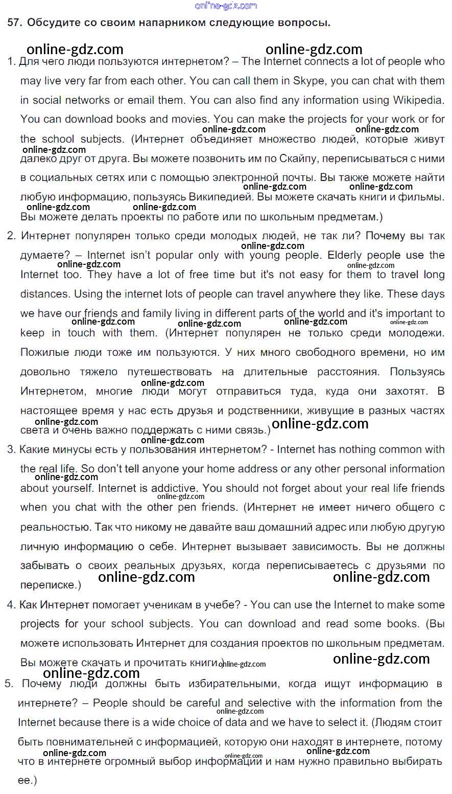 Готовые домашние задания по Английскому языку за 8 класс Учебник Биболетова, Трубанева Enjoy English 2015 - Section 4 Unit 3 57
