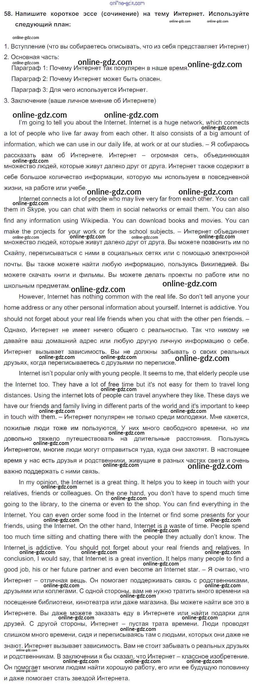 Готовые домашние задания по Английскому языку за 8 класс Учебник Биболетова, Трубанева Enjoy English 2015 - Section 4 Unit 3 58