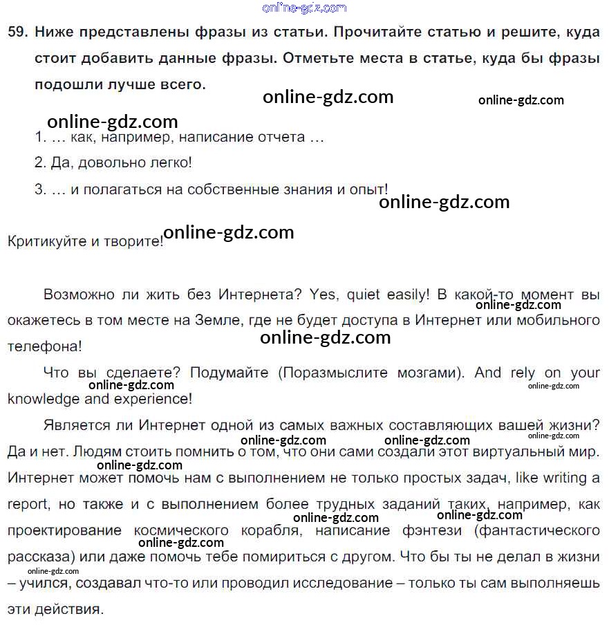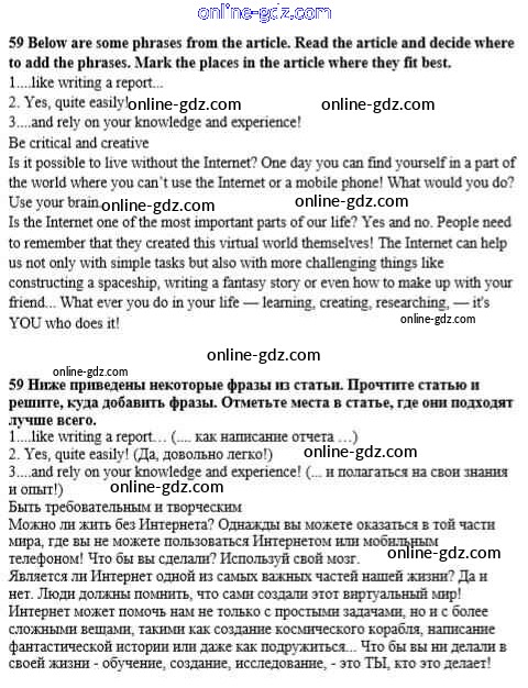Готовые домашние задания по Английскому языку за 8 класс Учебник Биболетова, Трубанева Enjoy English 2015 - Section 4 Unit 3 59