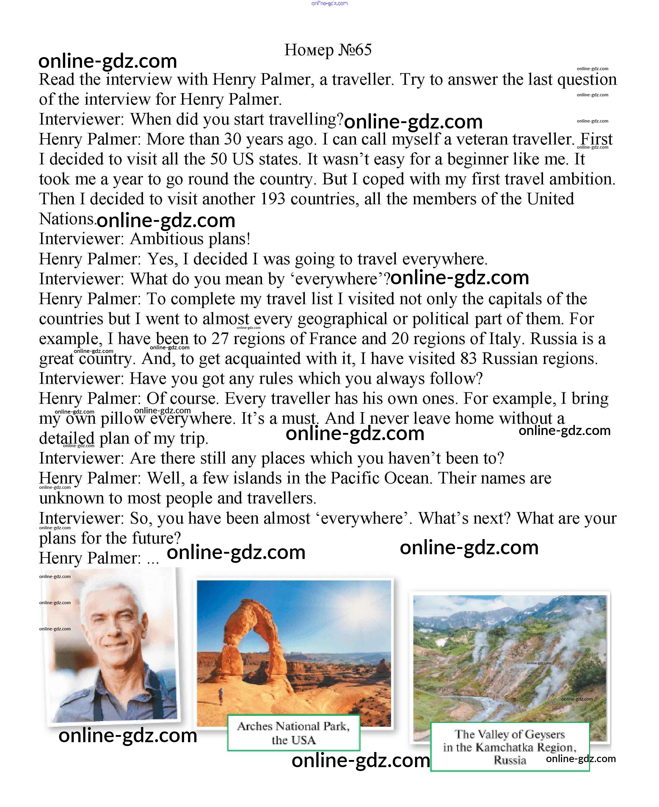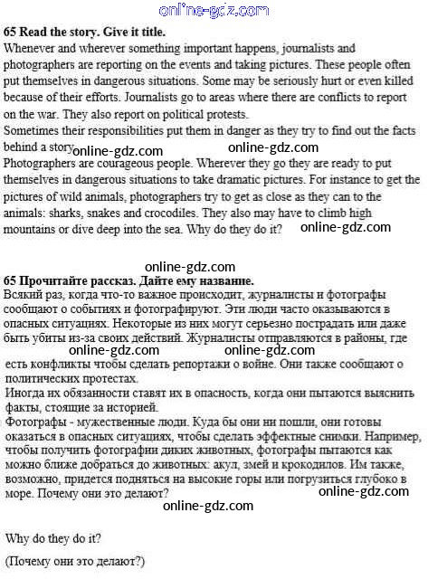 Готовые домашние задания по Английскому языку за 8 класс Учебник Биболетова, Трубанева Enjoy English 2015 - Section 5 Unit 3 65
