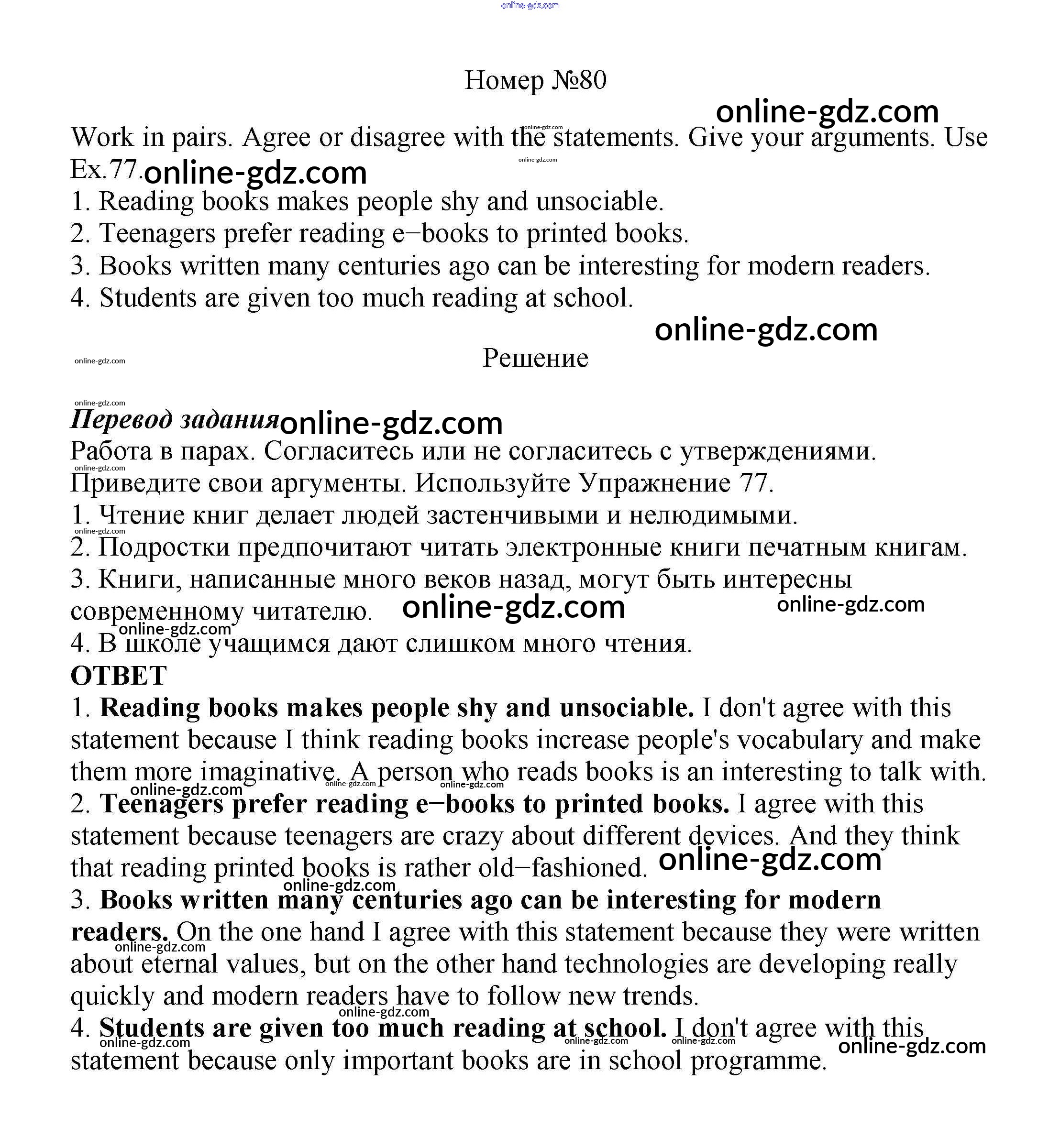 Готовые домашние задания по Английскому языку за 8 класс Учебник Биболетова, Трубанева Enjoy English 2015 - Section 6 Unit 3 80
