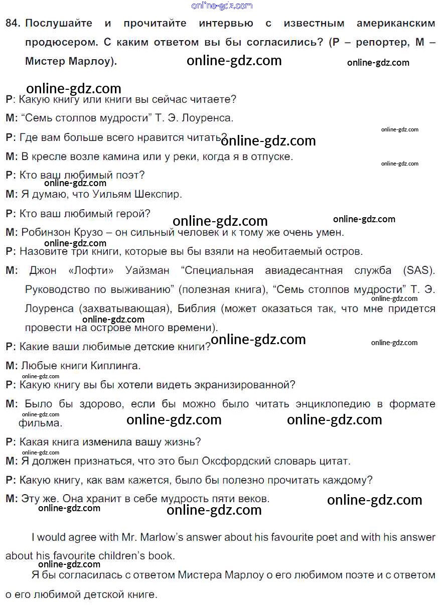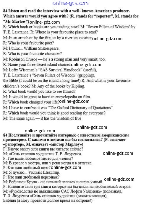 Готовые домашние задания по Английскому языку за 8 класс Учебник Биболетова, Трубанева Enjoy English 2015 - Section 6 Unit 3 84
