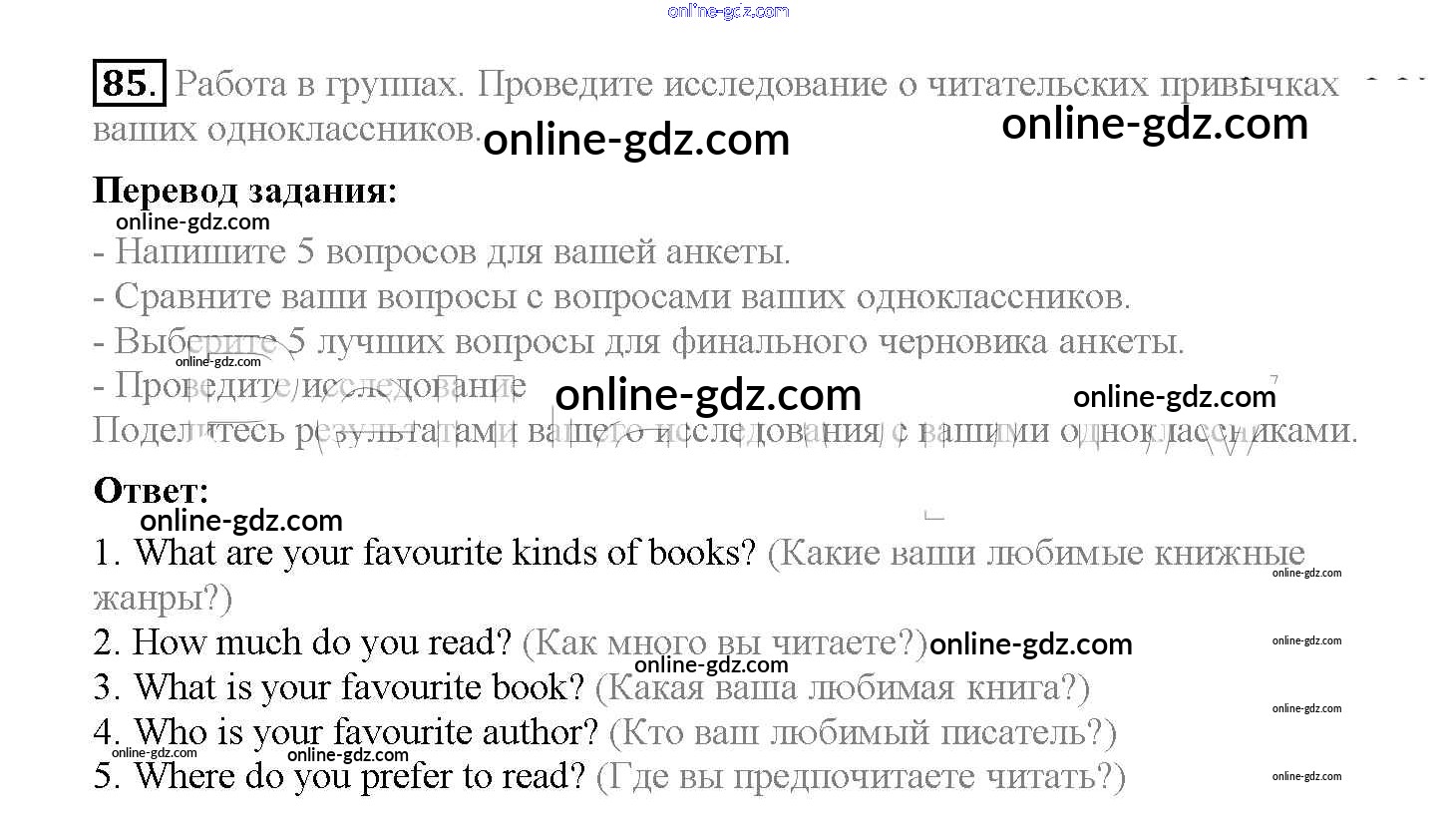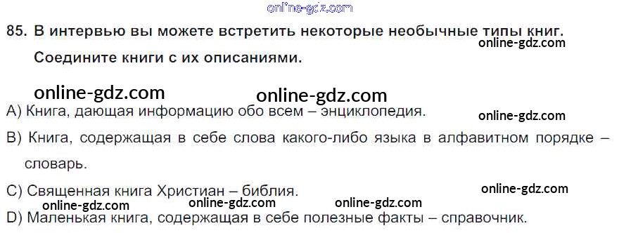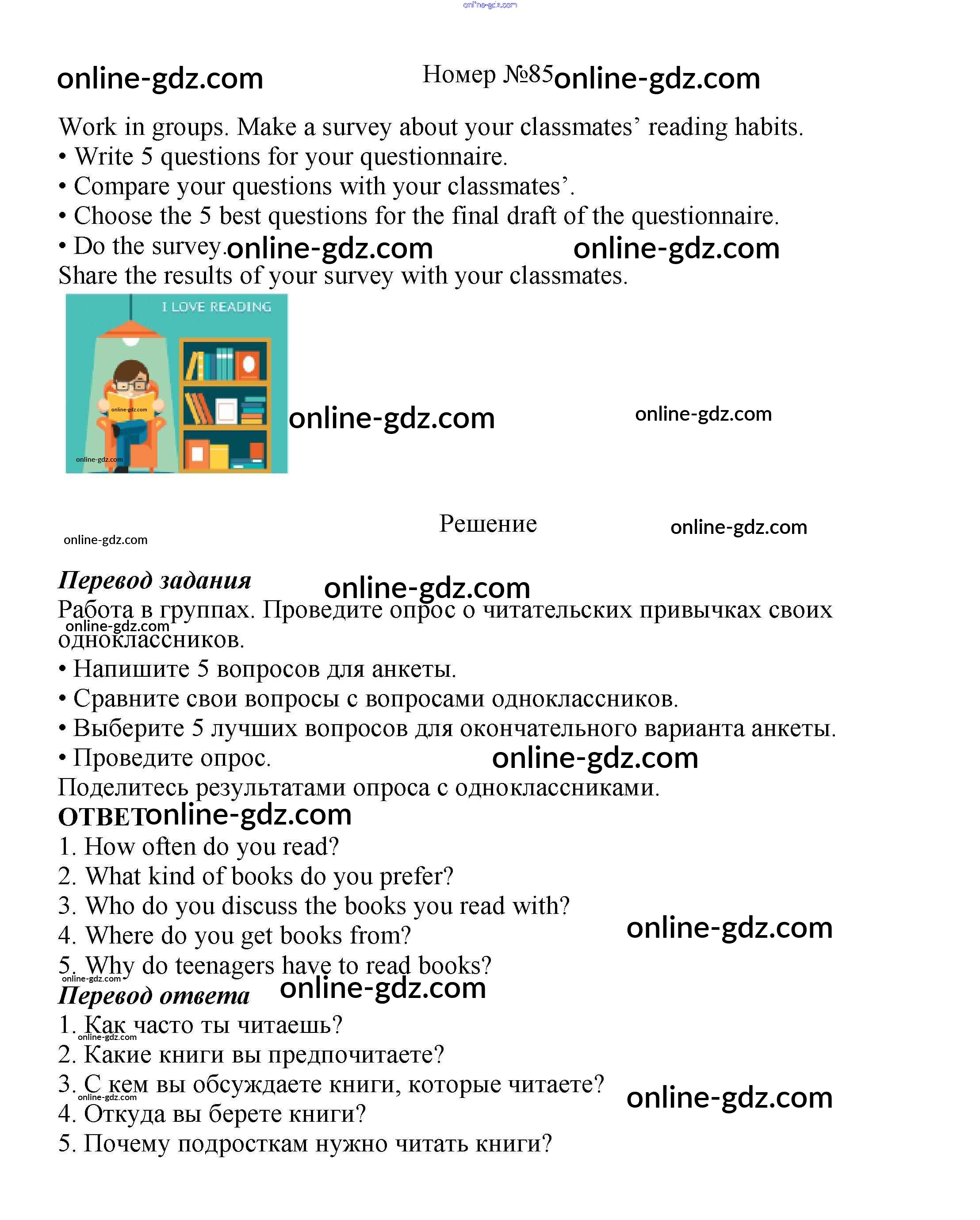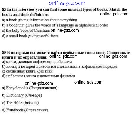 Готовые домашние задания по Английскому языку за 8 класс Учебник Биболетова, Трубанева Enjoy English 2015 - Section 6 Unit 3 85