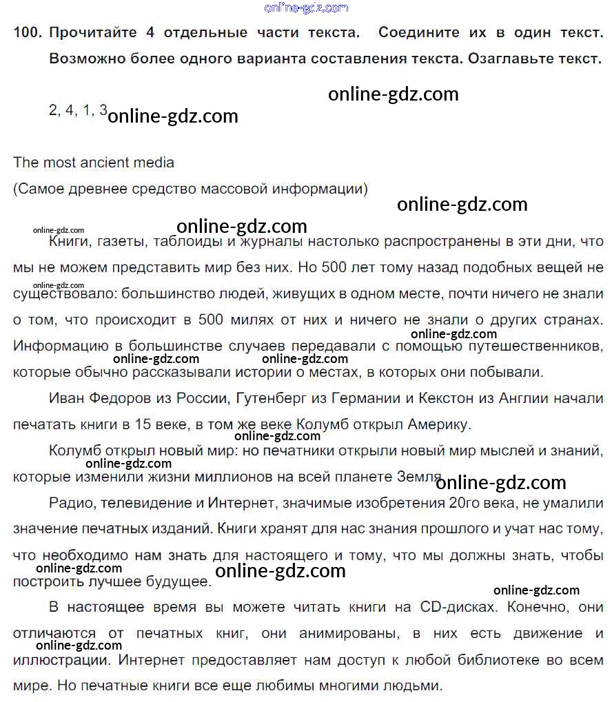 Готовые домашние задания по Английскому языку за 8 класс Учебник Биболетова, Трубанева Enjoy English 2015 - Section 7 Unit 3 100