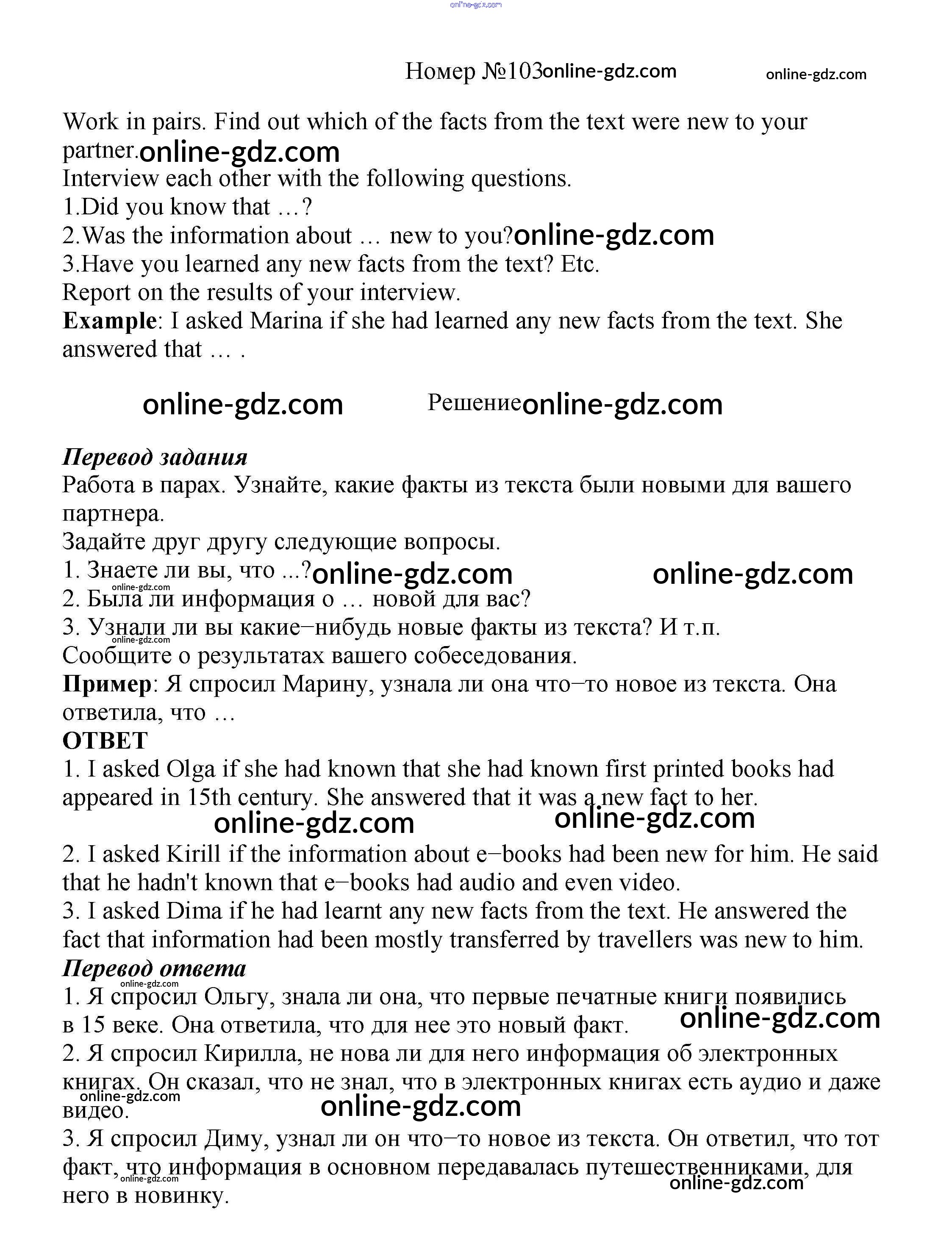 Готовые домашние задания по Английскому языку за 8 класс Учебник Биболетова, Трубанева Enjoy English 2015 - Section 7 Unit 3 103