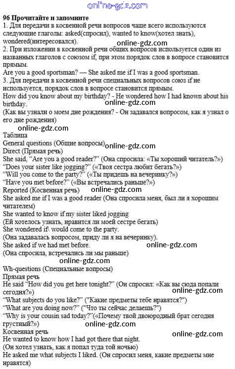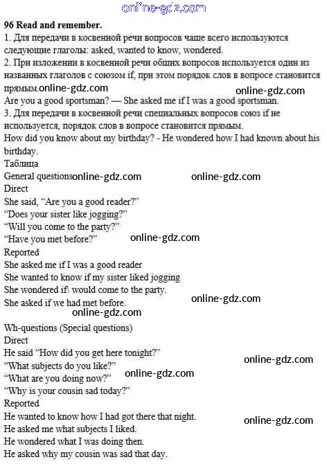 Готовые домашние задания по Английскому языку за 8 класс Учебник Биболетова, Трубанева Enjoy English 2015 - Section 7 Unit 3 96