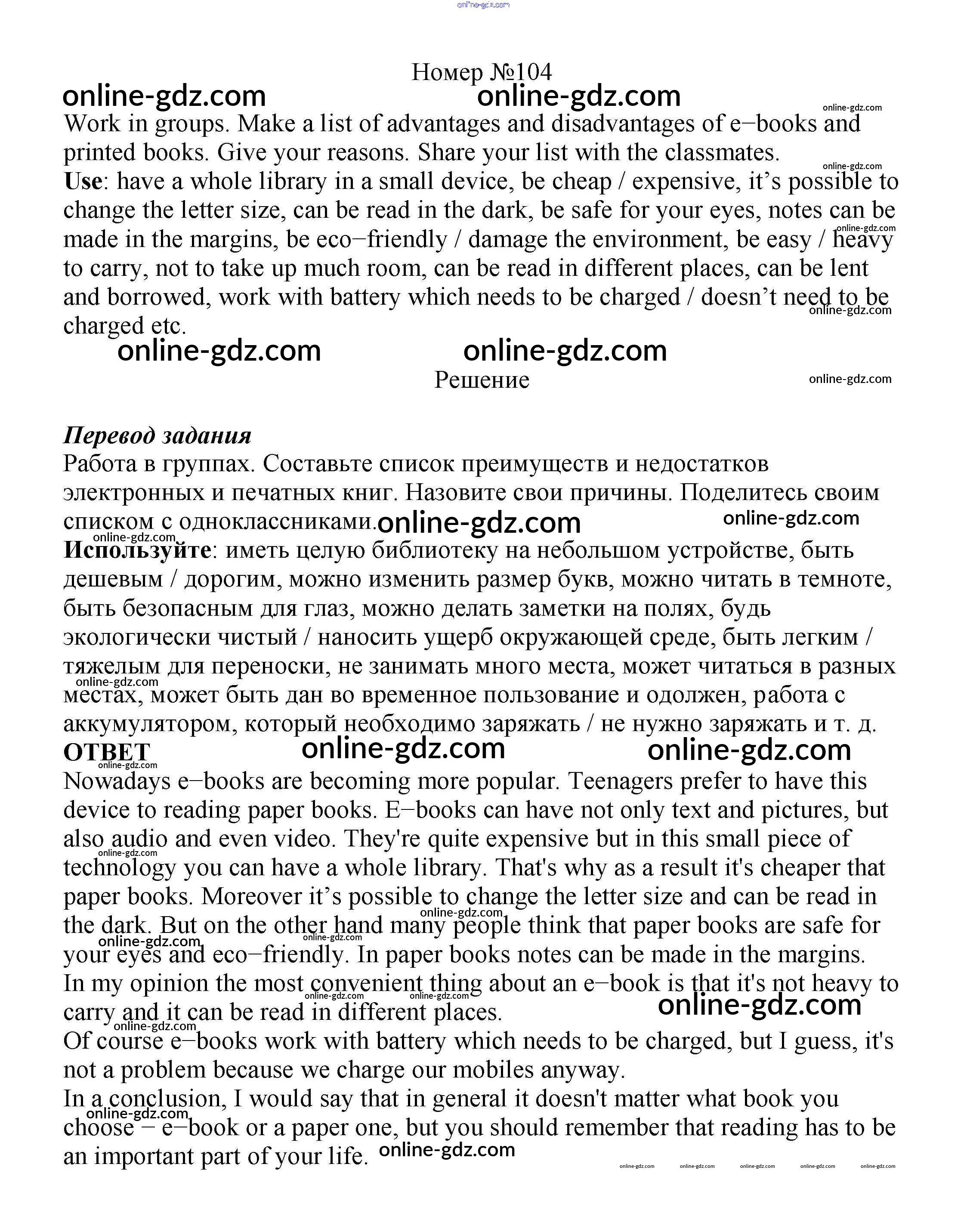 Готовые домашние задания по Английскому языку за 8 класс Учебник Биболетова, Трубанева Enjoy English 2015 - Section 8 Unit 3 104
