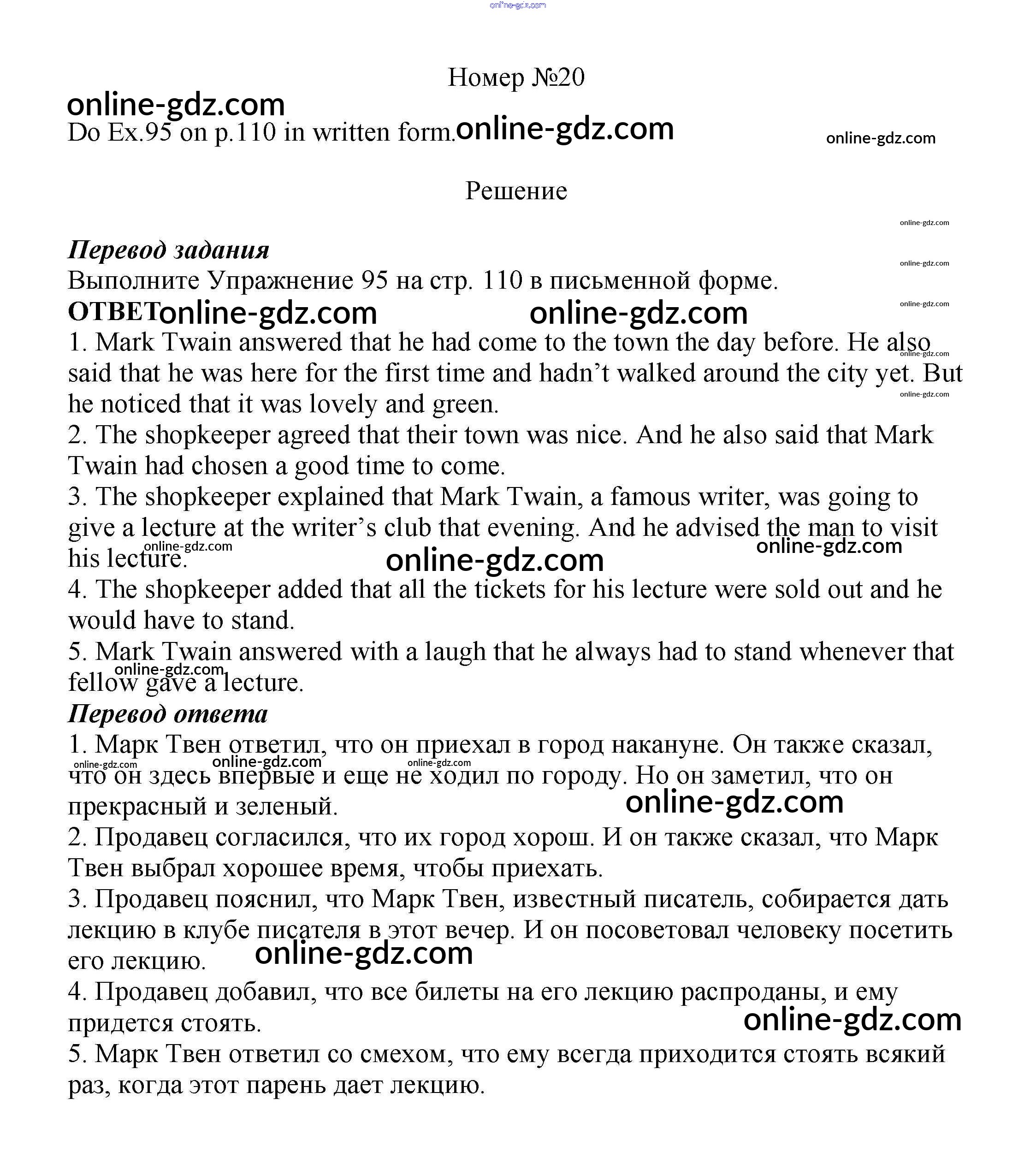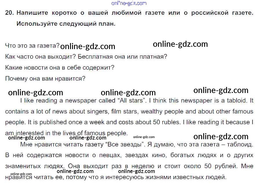 Готовые домашние задания по Английскому языку за 8 класс Учебник Биболетова, Трубанева Enjoy English 2015 - Homework Unit 3 20