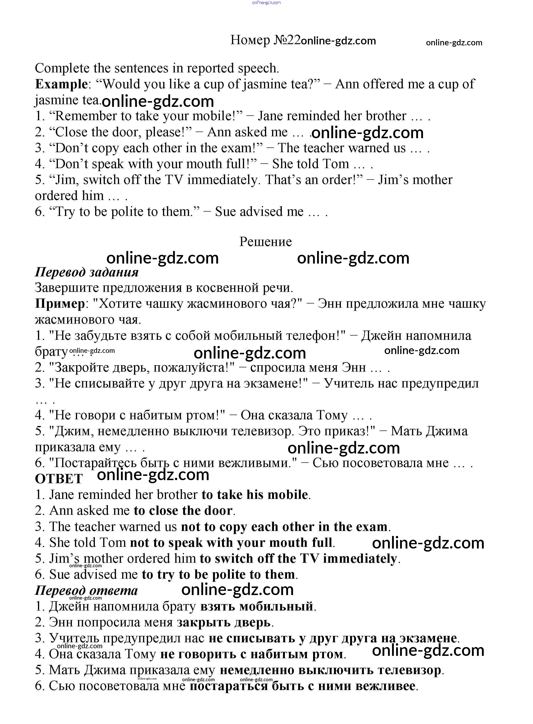 Готовые домашние задания по Английскому языку за 8 класс Учебник Биболетова, Трубанева Enjoy English 2015 - Homework Unit 3 22