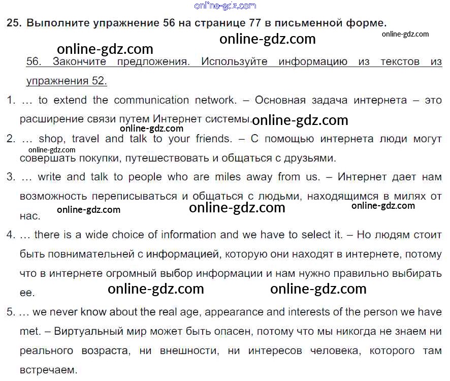 Готовые домашние задания по Английскому языку за 8 класс Учебник Биболетова, Трубанева Enjoy English 2015 - Homework Unit 3 25