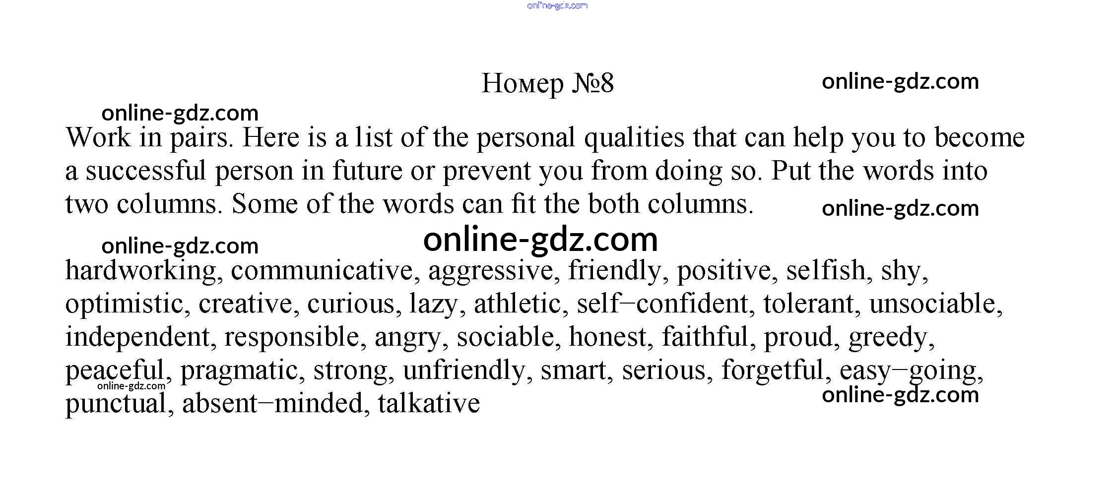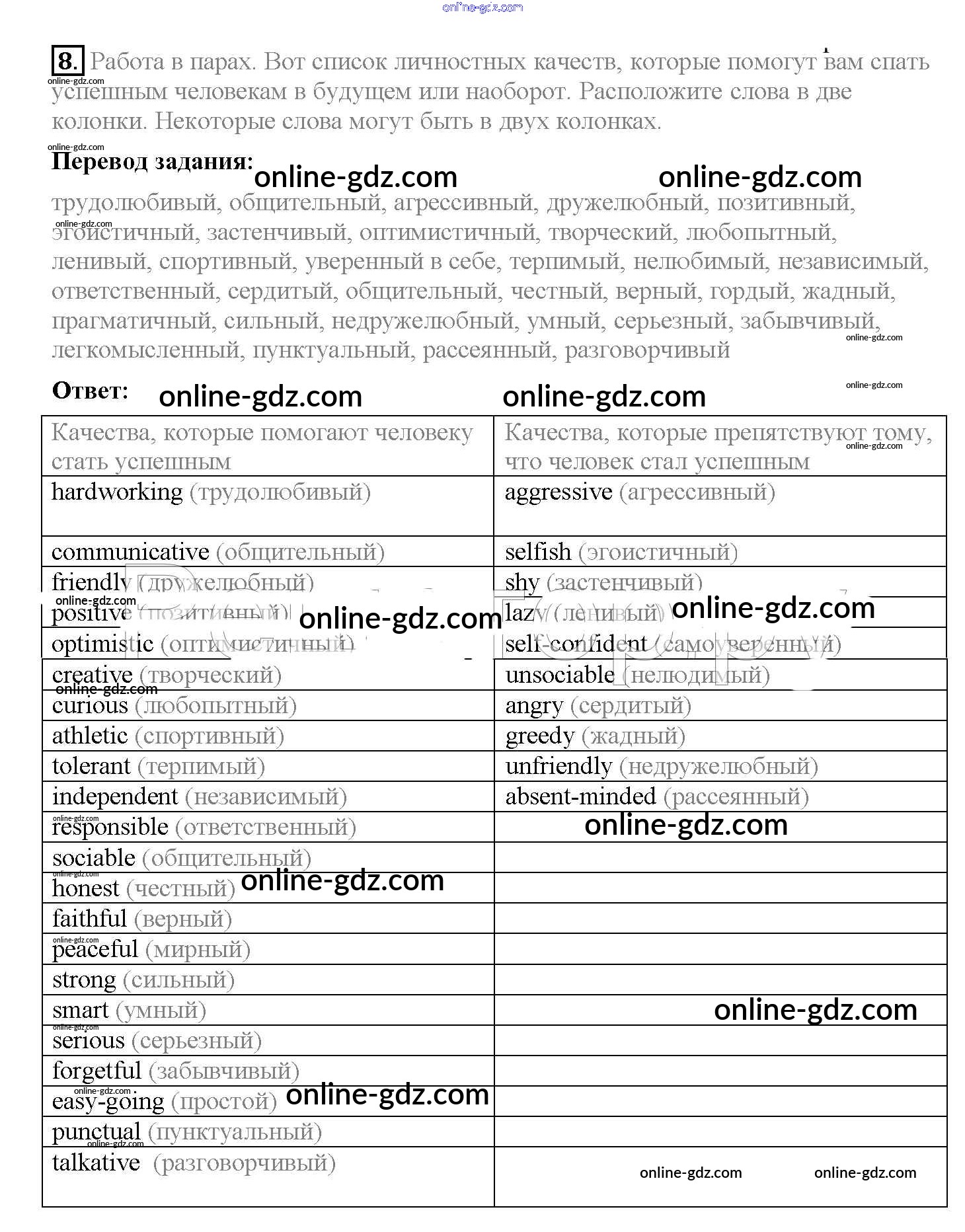 Готовые домашние задания по Английскому языку за 8 класс Учебник Биболетова, Трубанева Enjoy English 2015 - Section 1 Unit 4 8