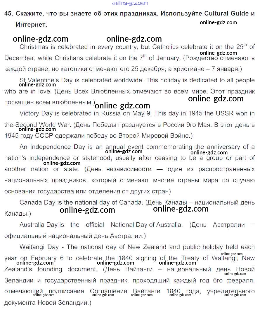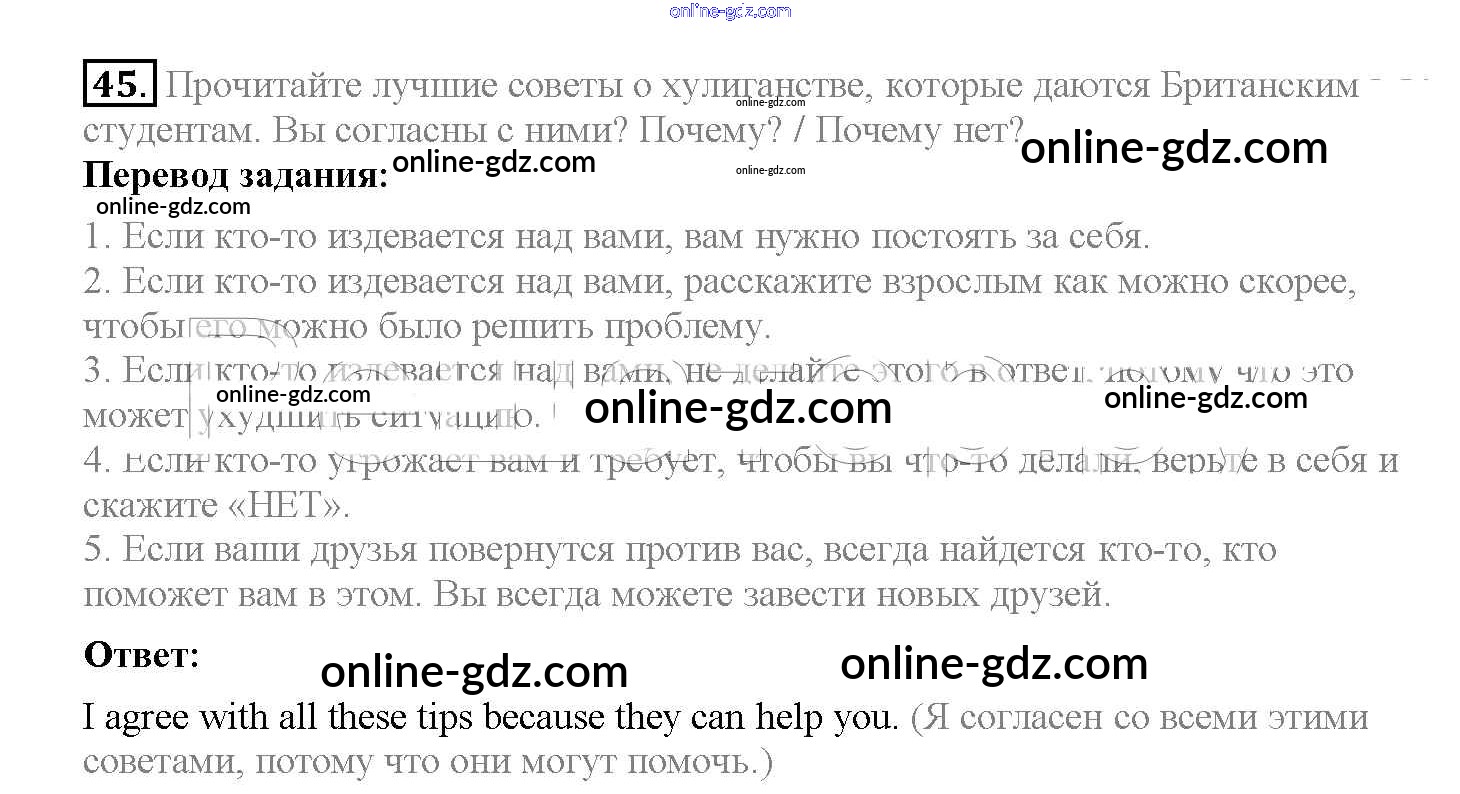 Готовые домашние задания по Английскому языку за 8 класс Учебник Биболетова, Трубанева Enjoy English 2015 - Section 4 Unit 4 45