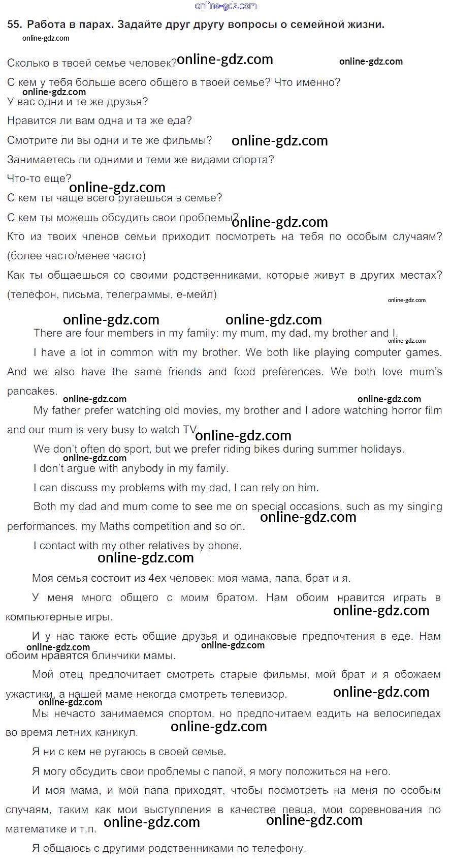 Готовые домашние задания по Английскому языку за 8 класс Учебник Биболетова, Трубанева Enjoy English 2015 - Section 4 Unit 4 55