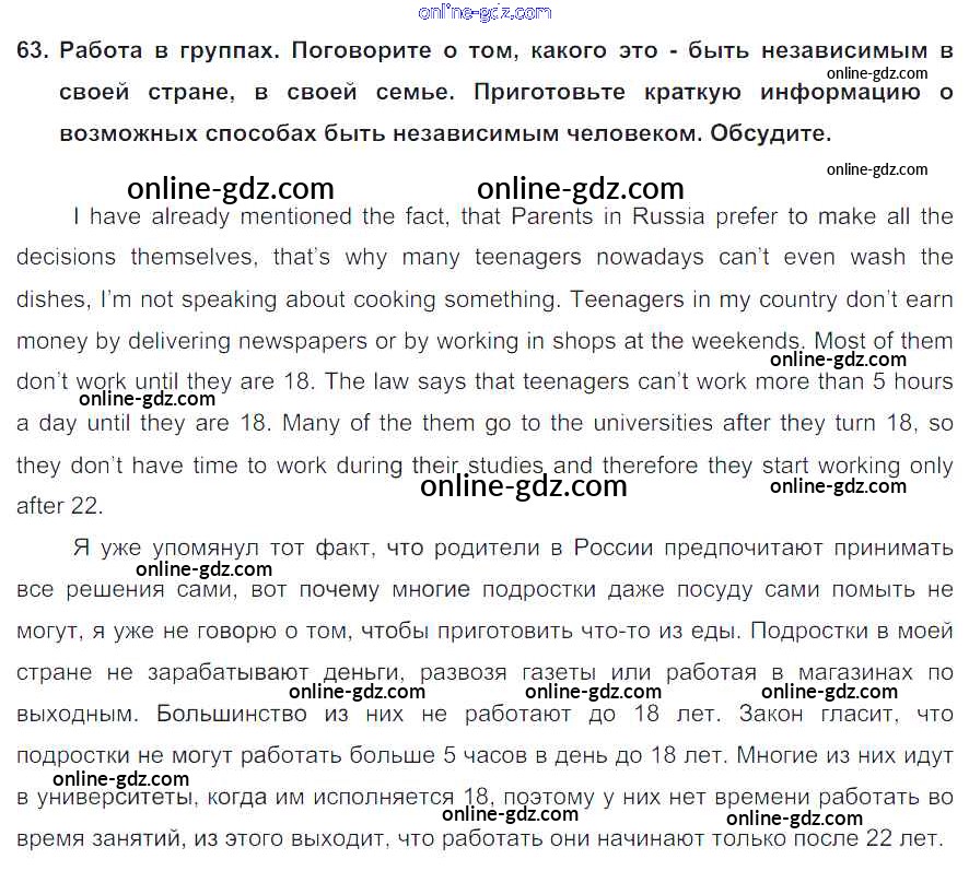 Готовые домашние задания по Английскому языку за 8 класс Учебник Биболетова, Трубанева Enjoy English 2015 - Section 5 Unit 4 63